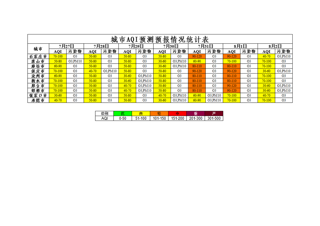 河北省环境空气质量预测(周报)2021年第31周