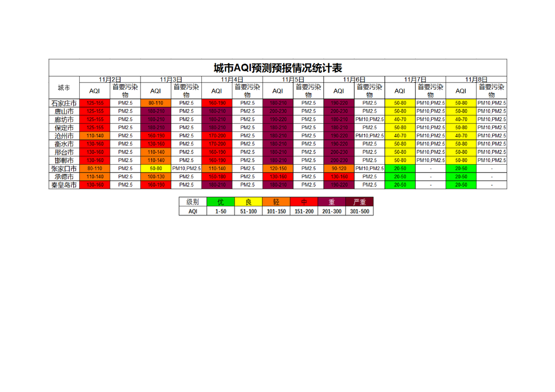 河北省环境空气质量预测(周报)2021年第45周