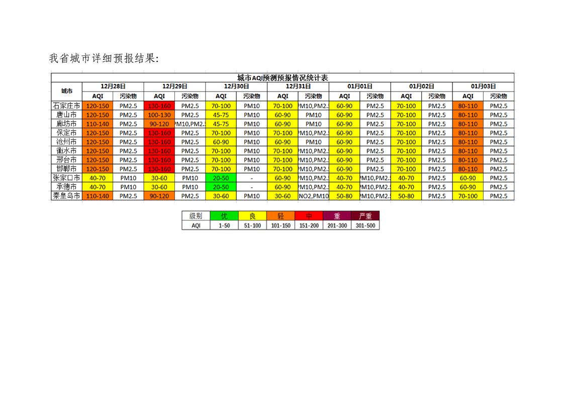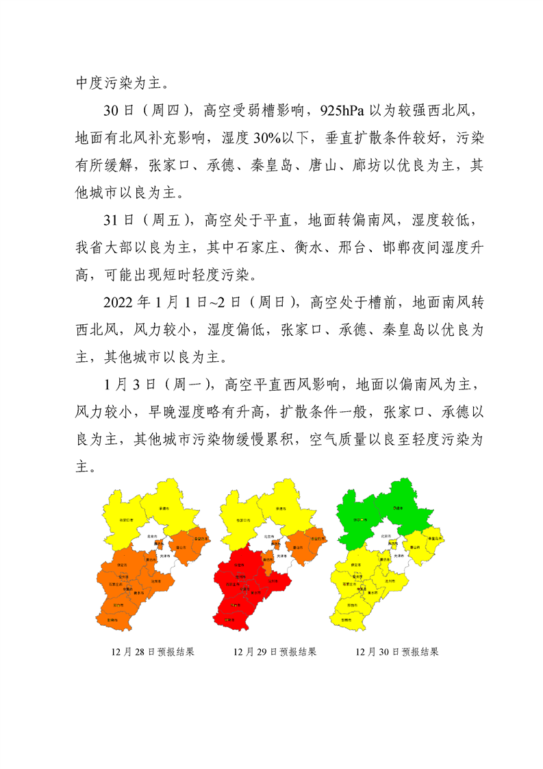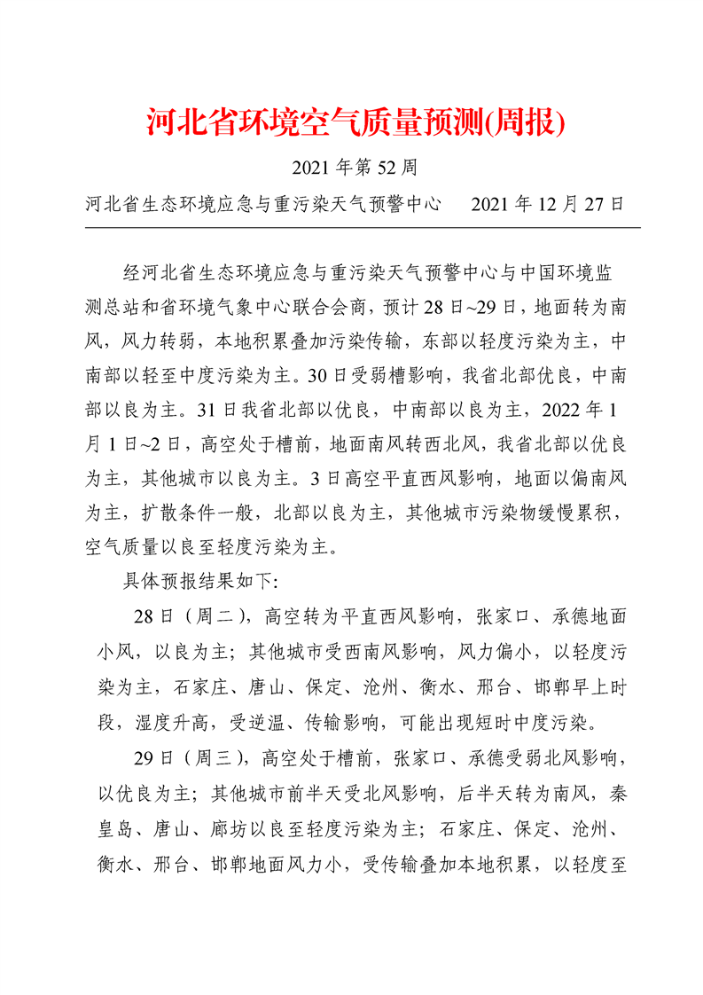 河北省环境空气质量预测(周报)2021年第52周