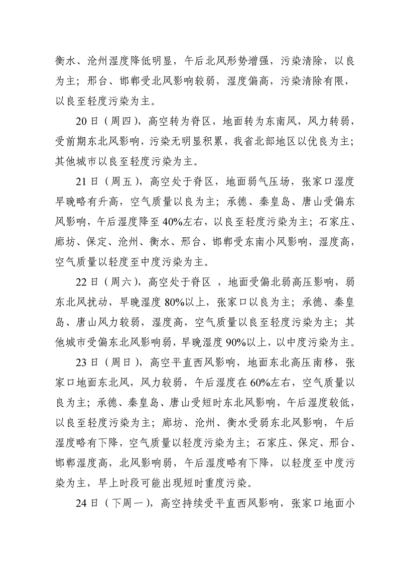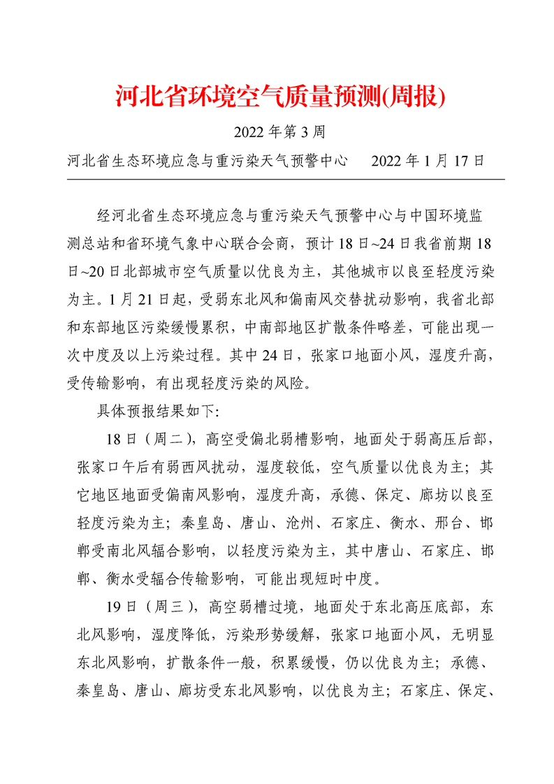 河北省环境空气质量预测周报2022年第3周