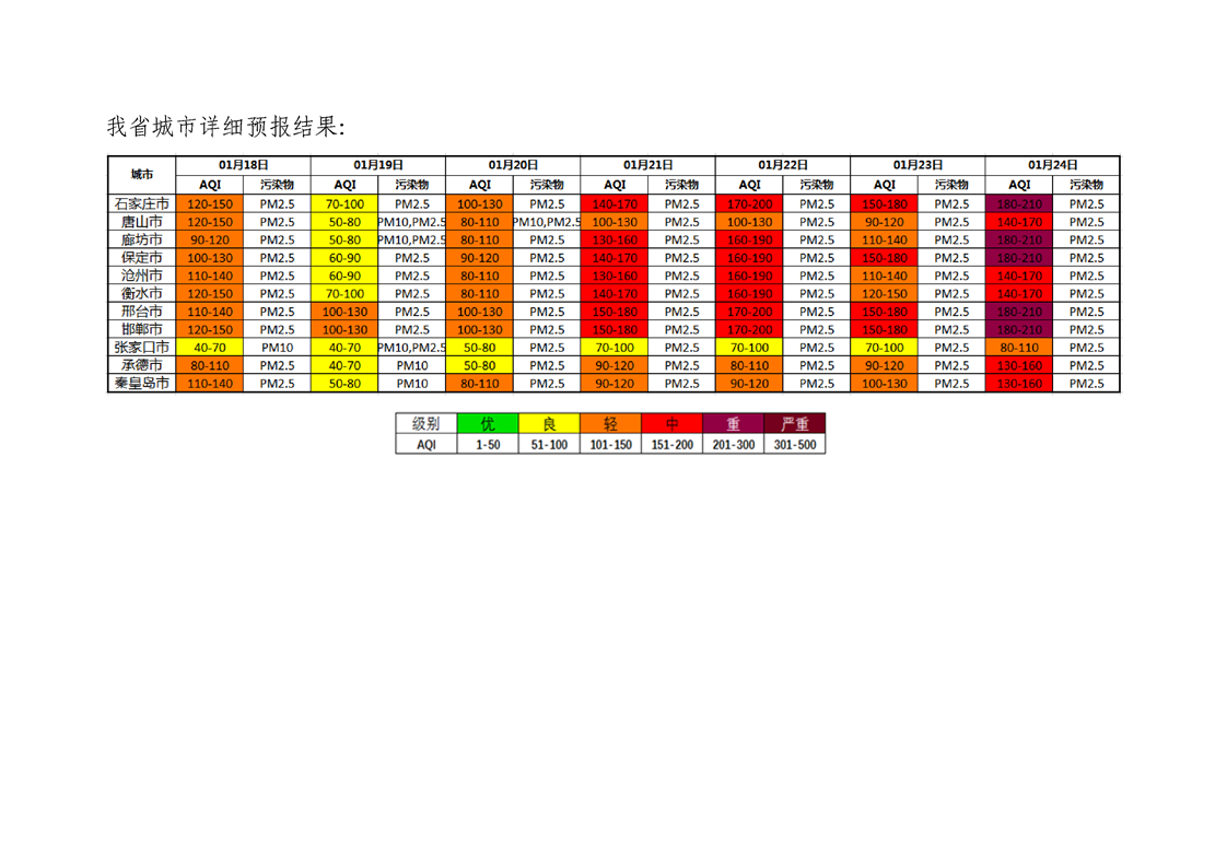 河北省环境空气质量预测(周报)2022年第3周