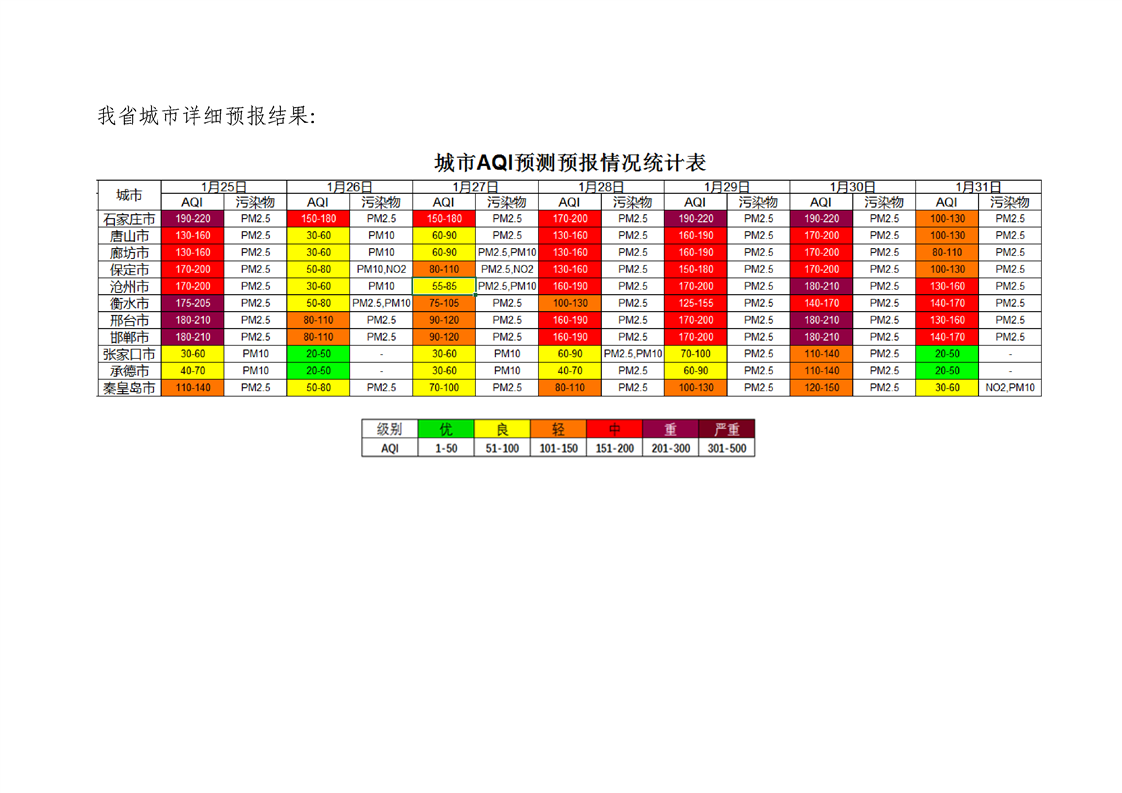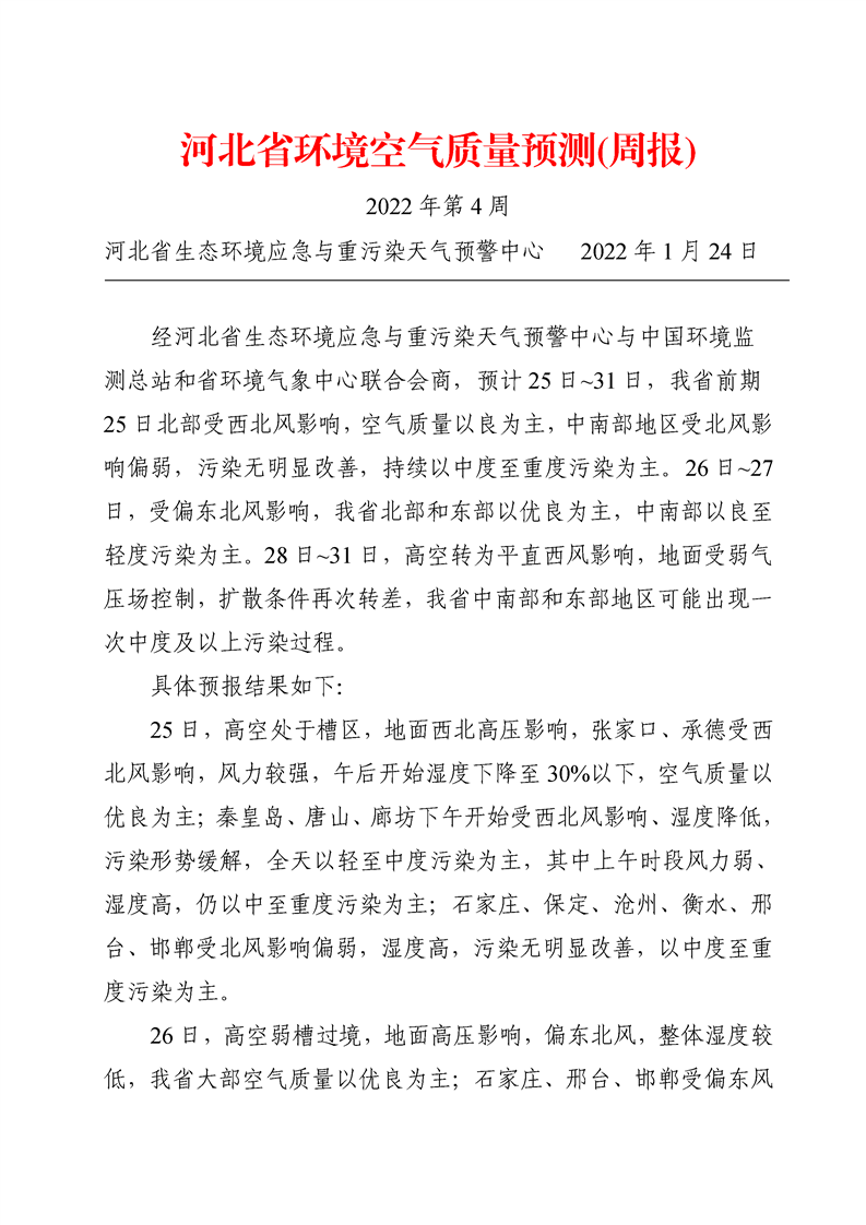河北省环境空气质量预测(周报)2022年第4周