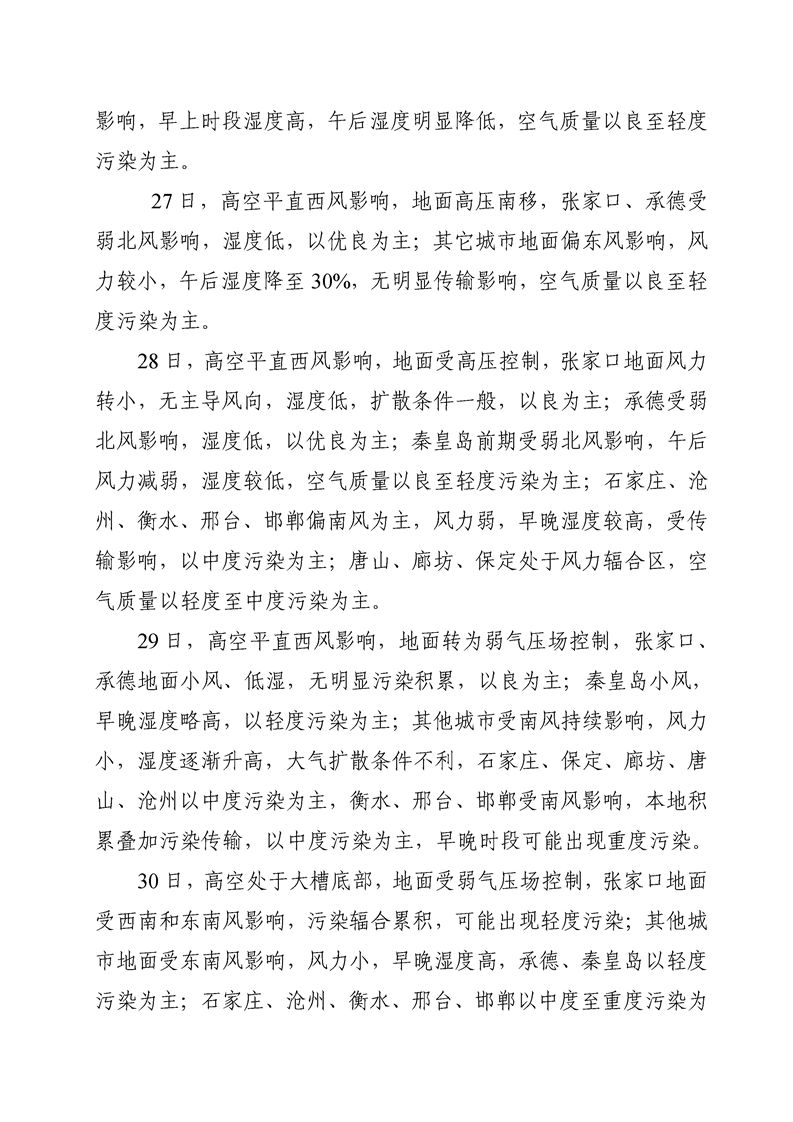 河北省环境空气质量预测周报2022年第4周