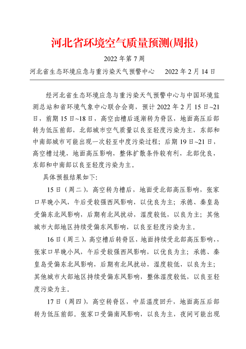 河北省环境空气质量预测(周报)2022年第7周