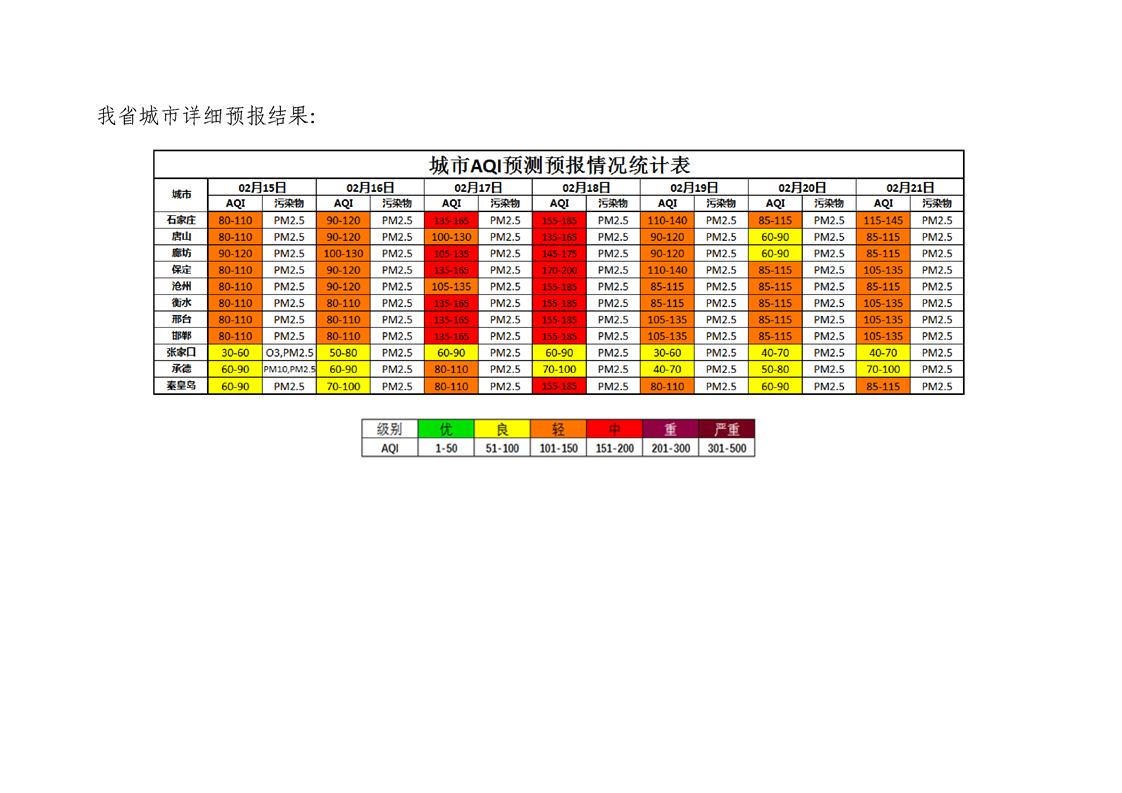 河北省环境空气质量预测(周报)2022年第5周