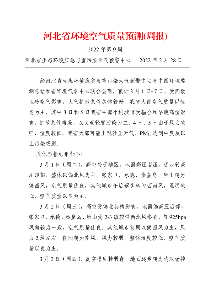 河北省环境空气质量预测(周报)2022年第9周