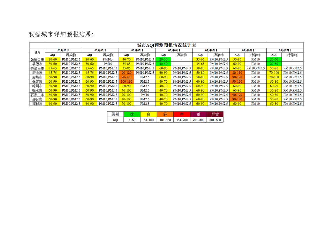 河北省环境空气质量预测(周报)2022年第10周