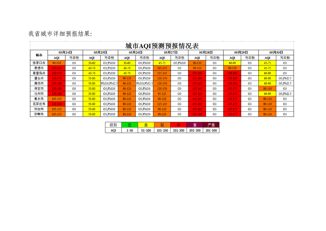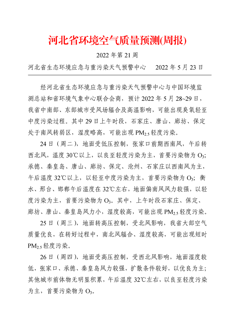 河北省环境空气质量预测(周报)2022年第21周