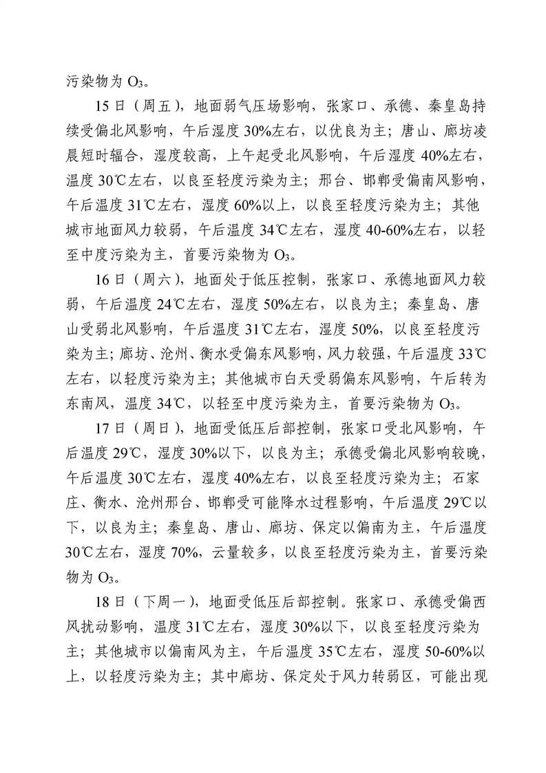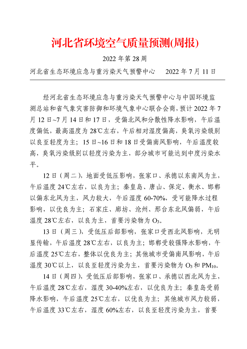 河北省环境空气质量预测周报2022年第28周