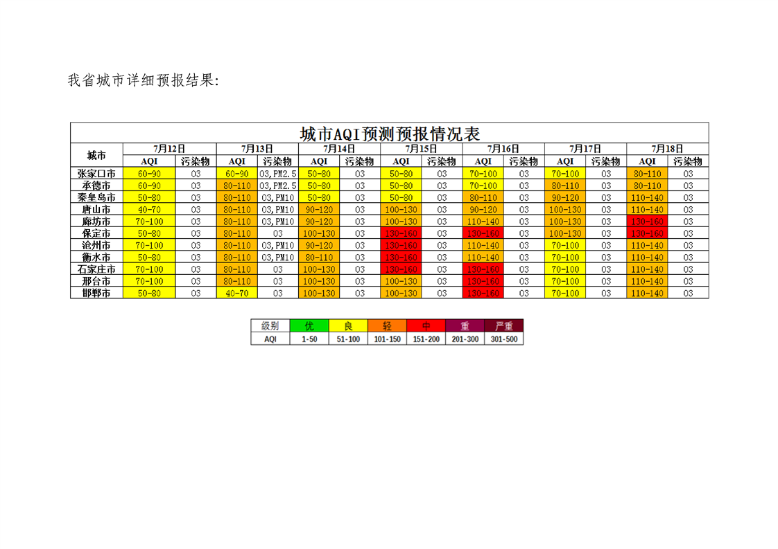 河北省环境空气质量预测(周报)2022年第28周