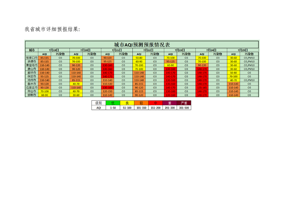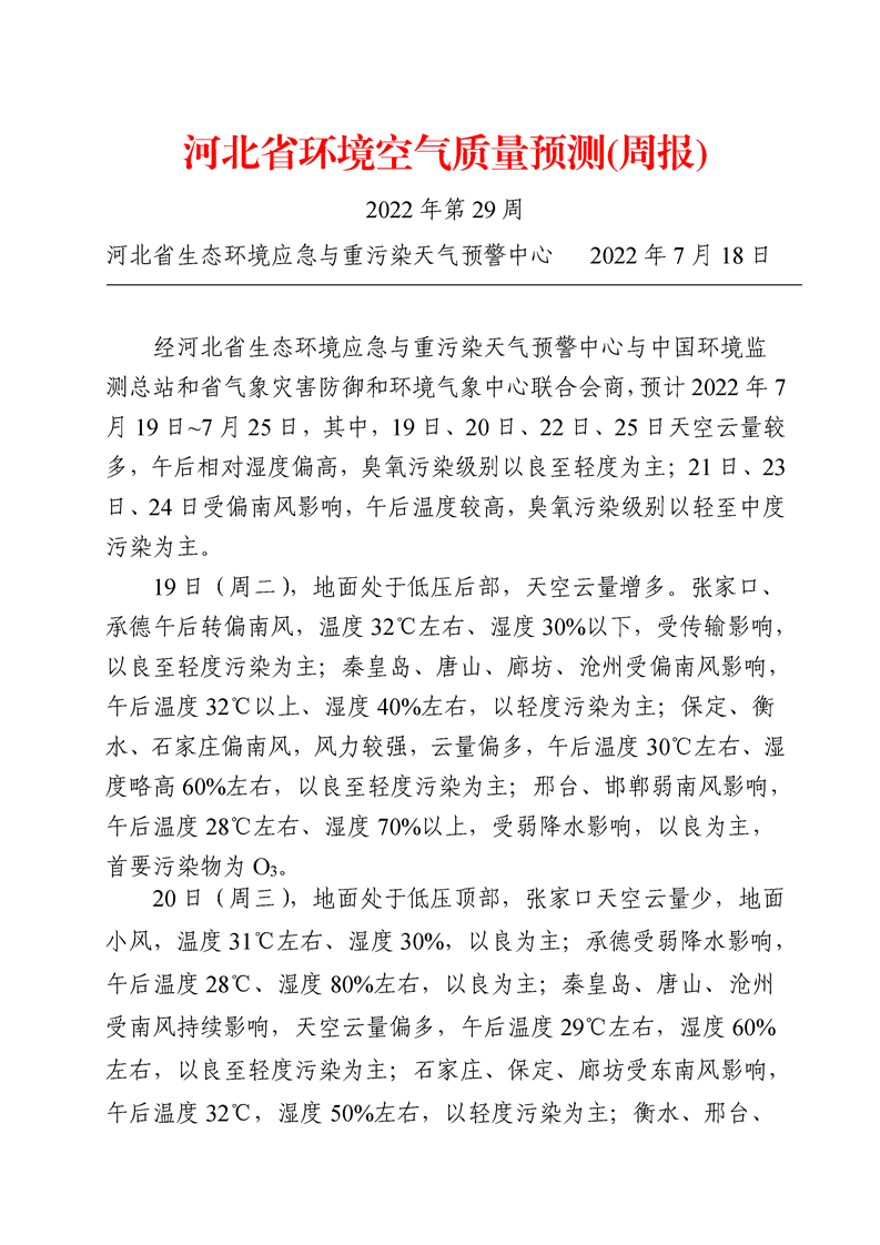 河北省环境空气质量预测周报2022年第29周