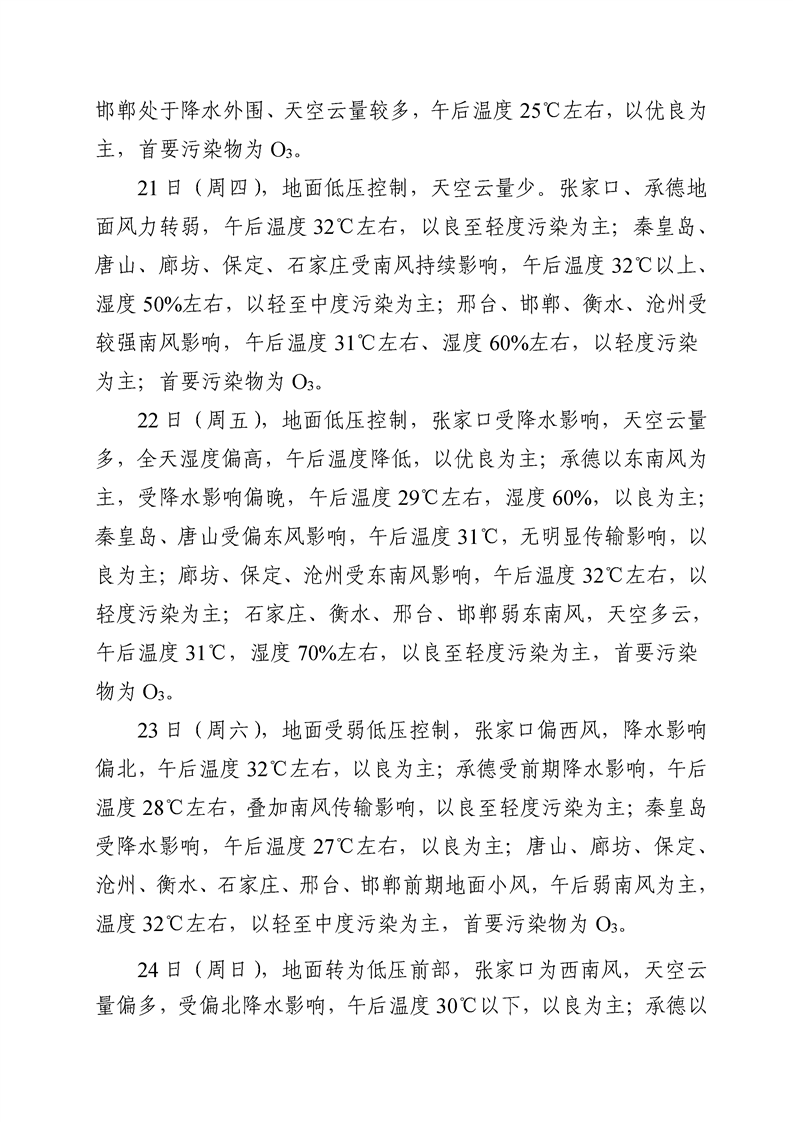 河北省环境空气质量预测(周报)2022年第30周