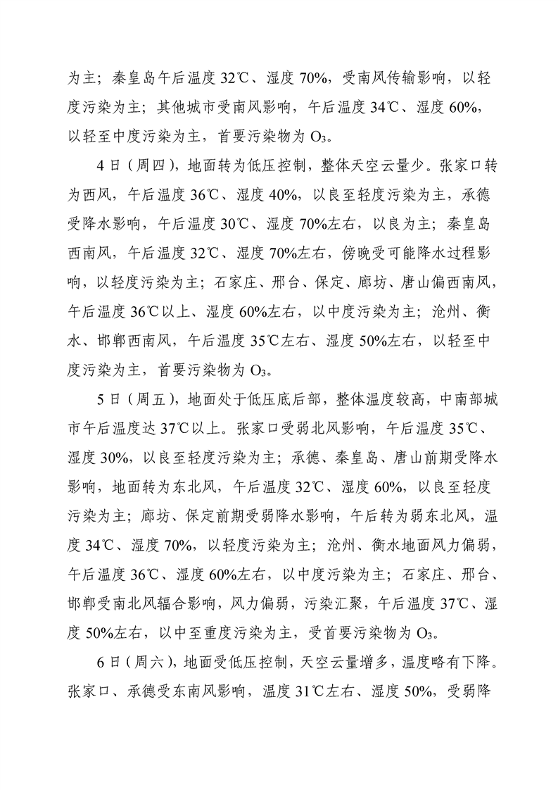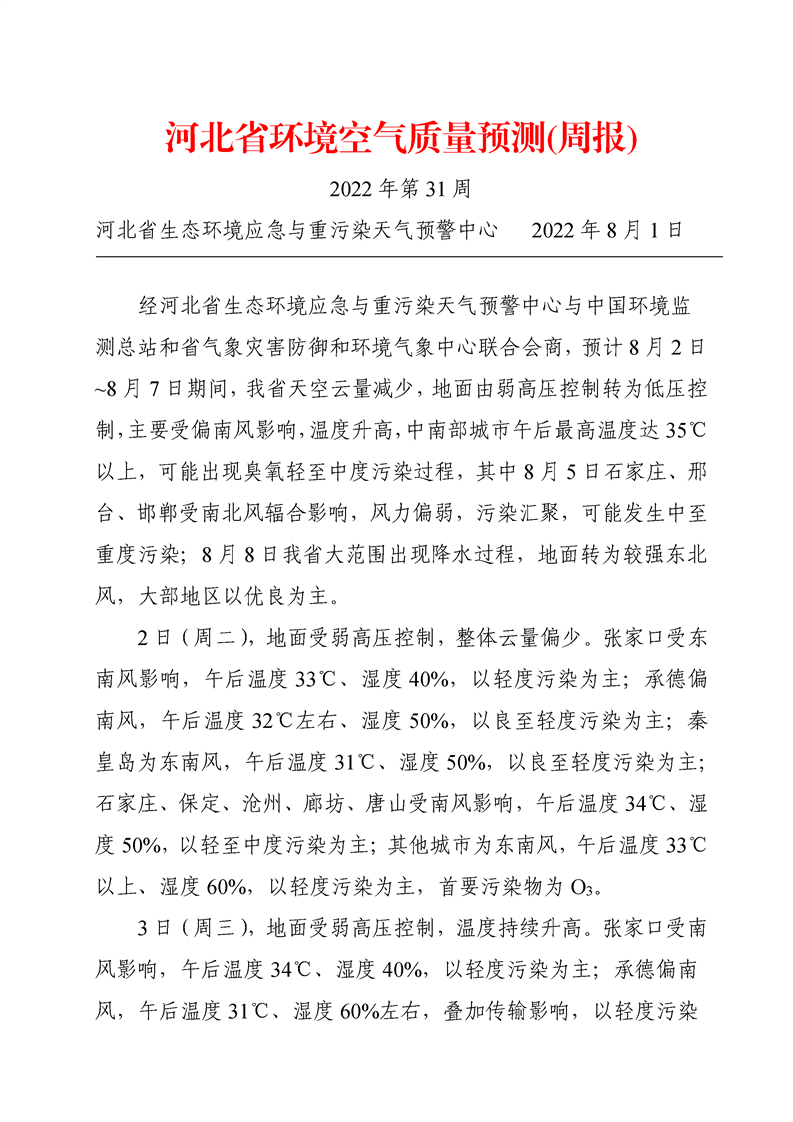 河北省环境空气质量预测周报2022年第31周