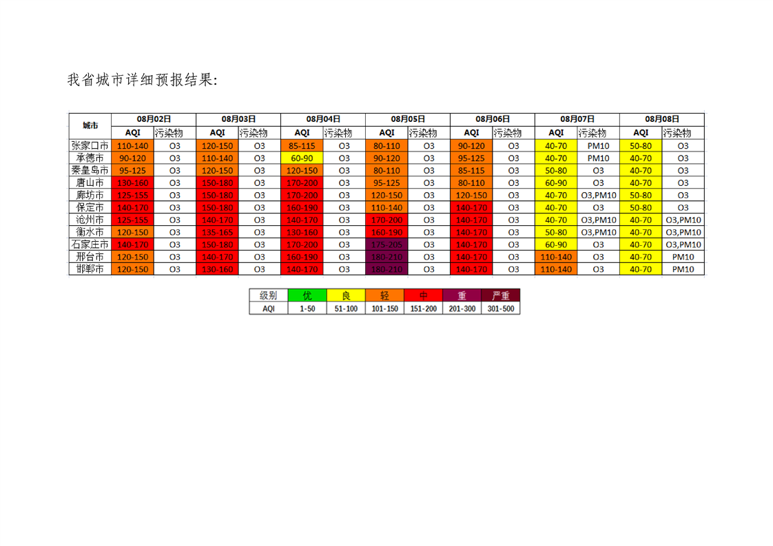 河北省环境空气质量预测(周报)2022年第32周