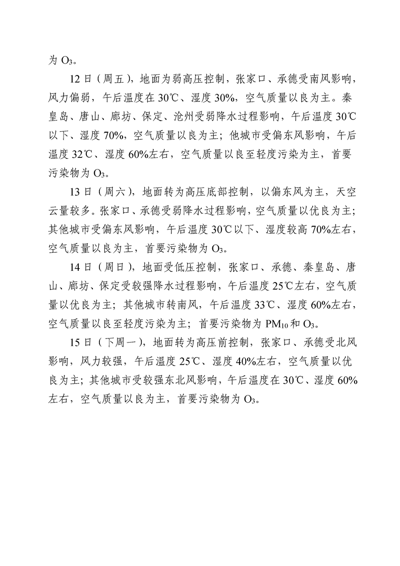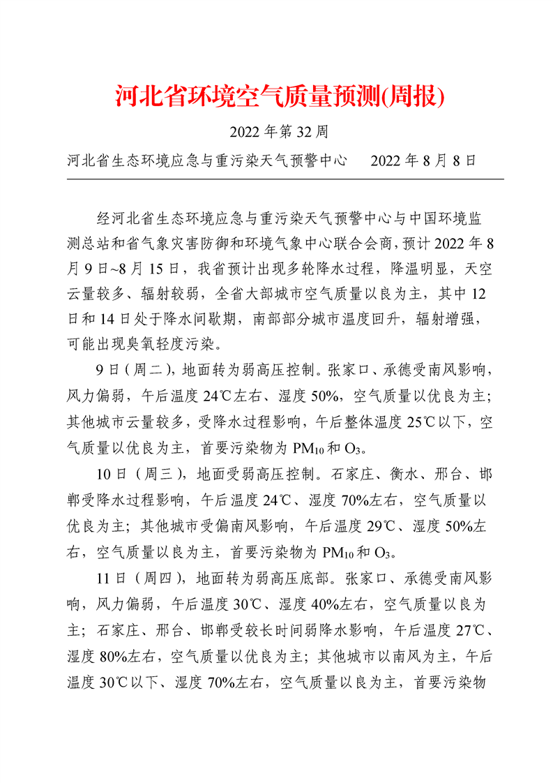 河北省环境空气质量预测周报2022年第32周