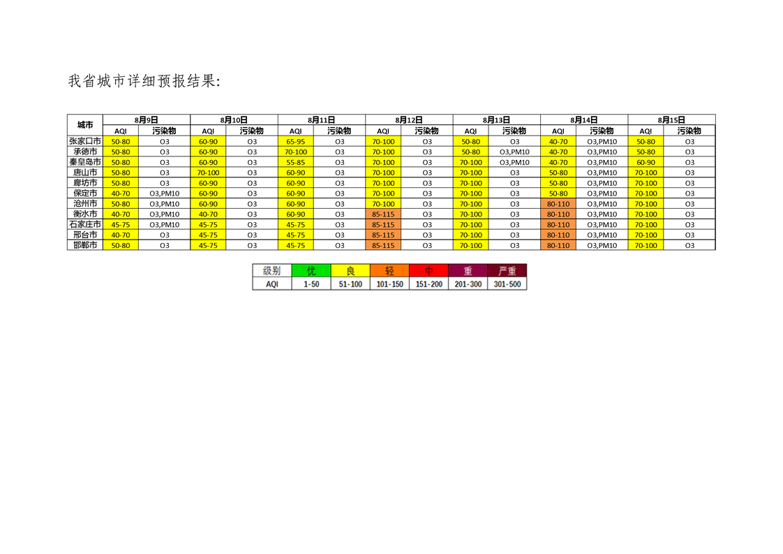 河北省环境空气质量预测(周报)2022年第33周