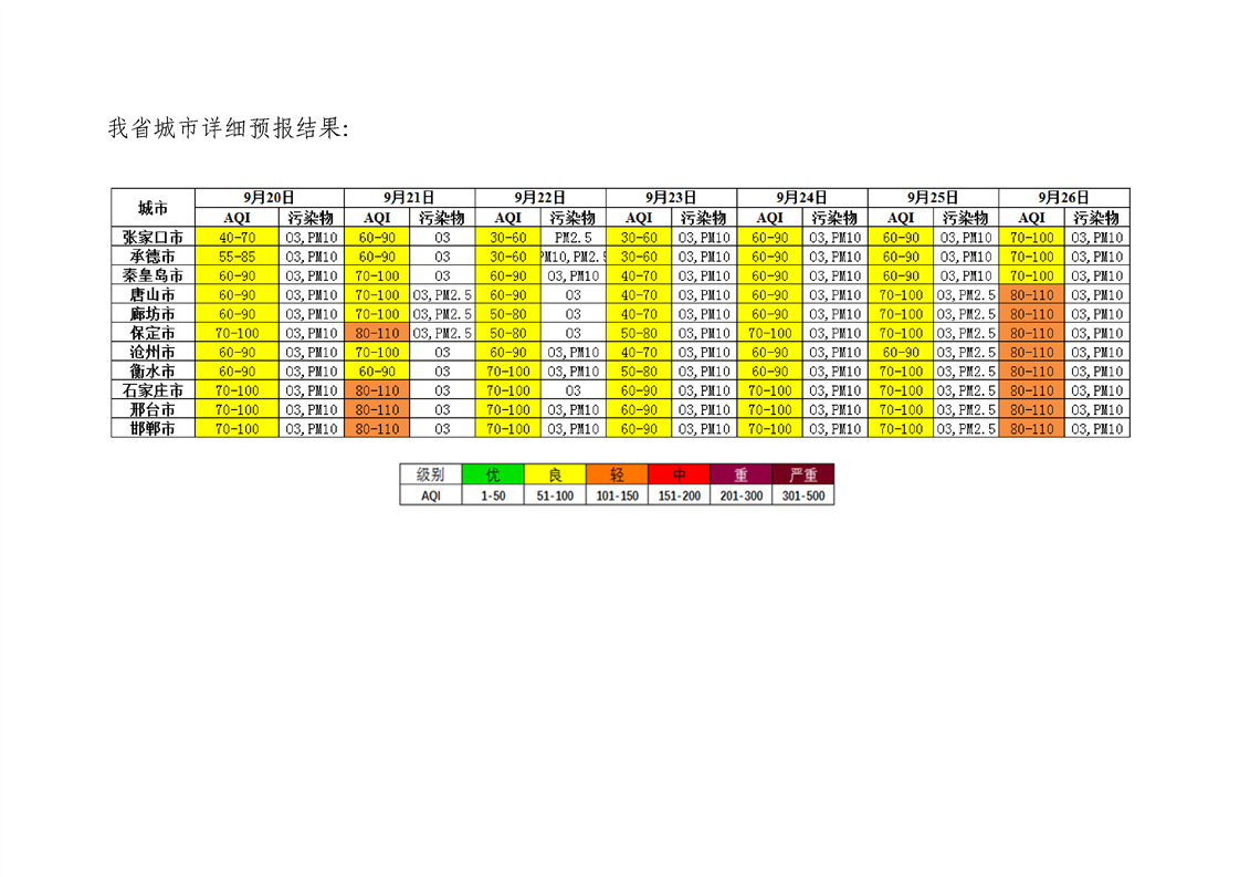 河北省环境空气质量预测(周报)2022年第39周