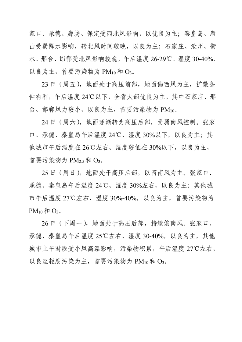 河北省环境空气质量预测(周报)2022年第34周