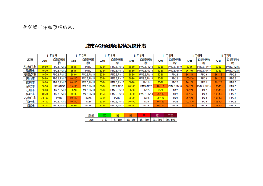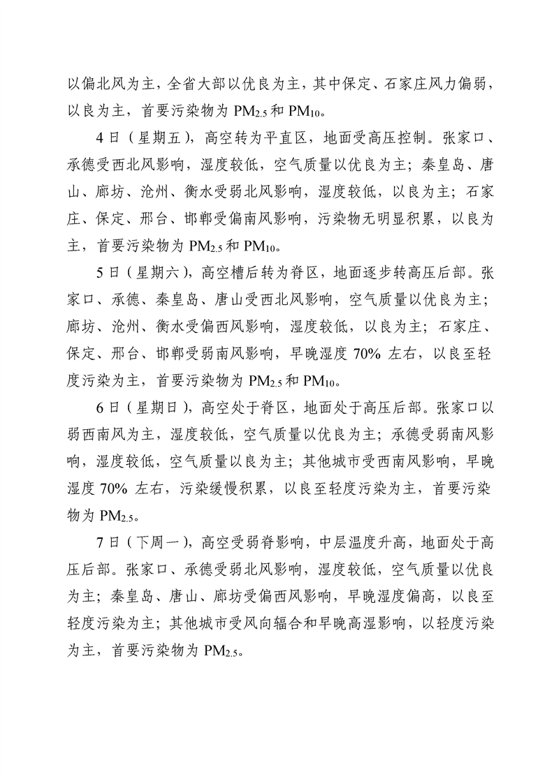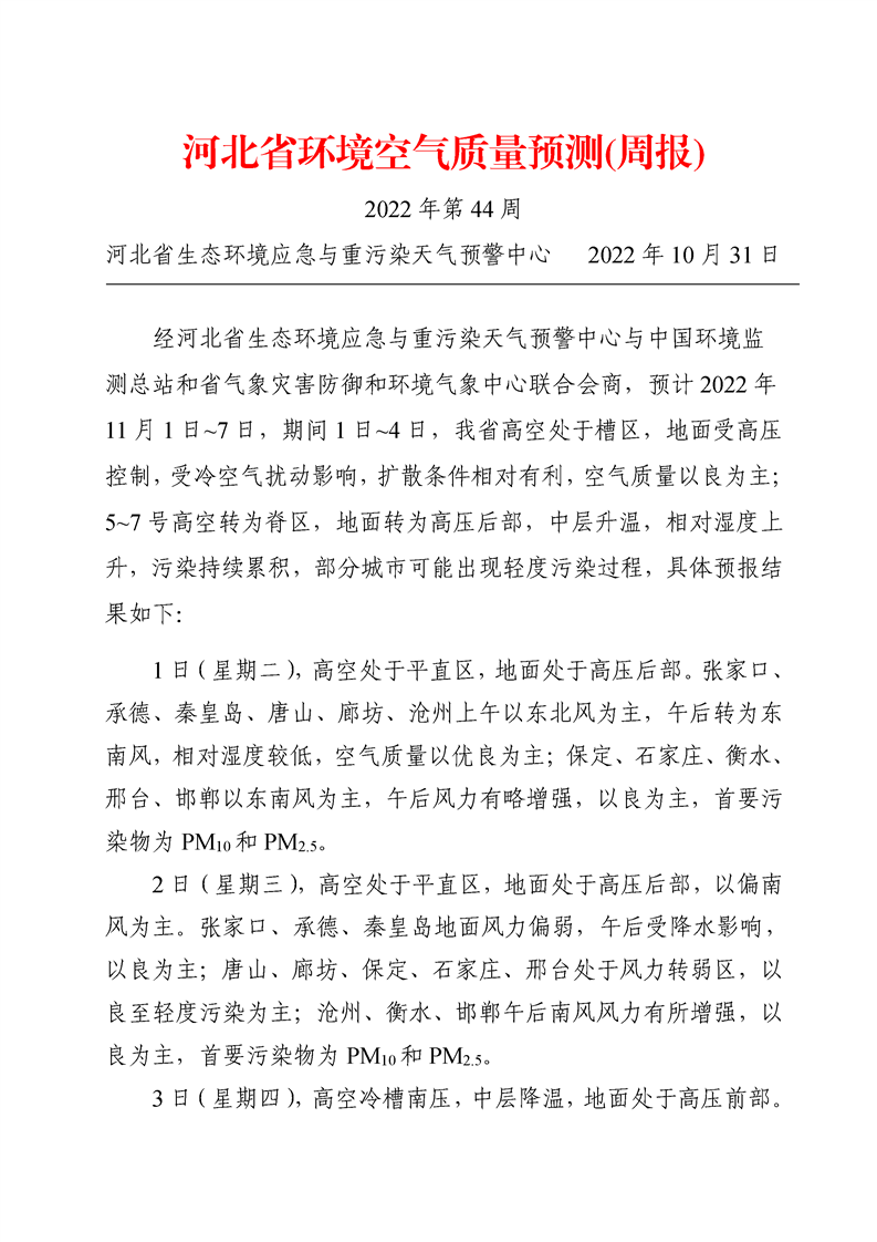 河北省环境空气质量预测(周报)2022年第44周