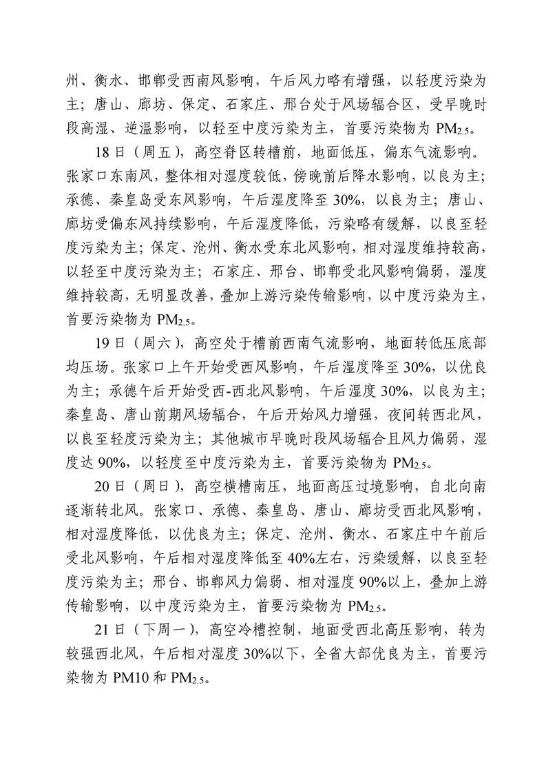 河北省环境空气质量预测(周报)2022年第46周