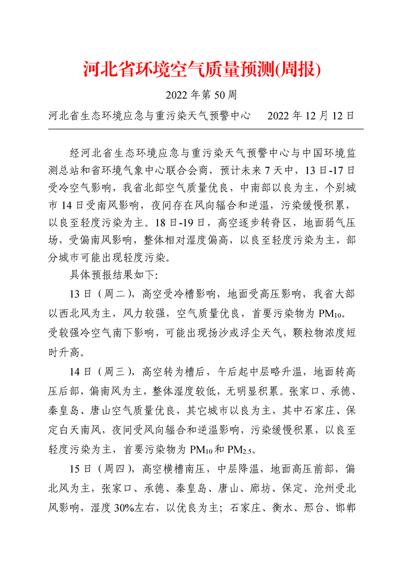 来源:省生态环境应急与重污染天气预警中心 时间:2022-12-12
