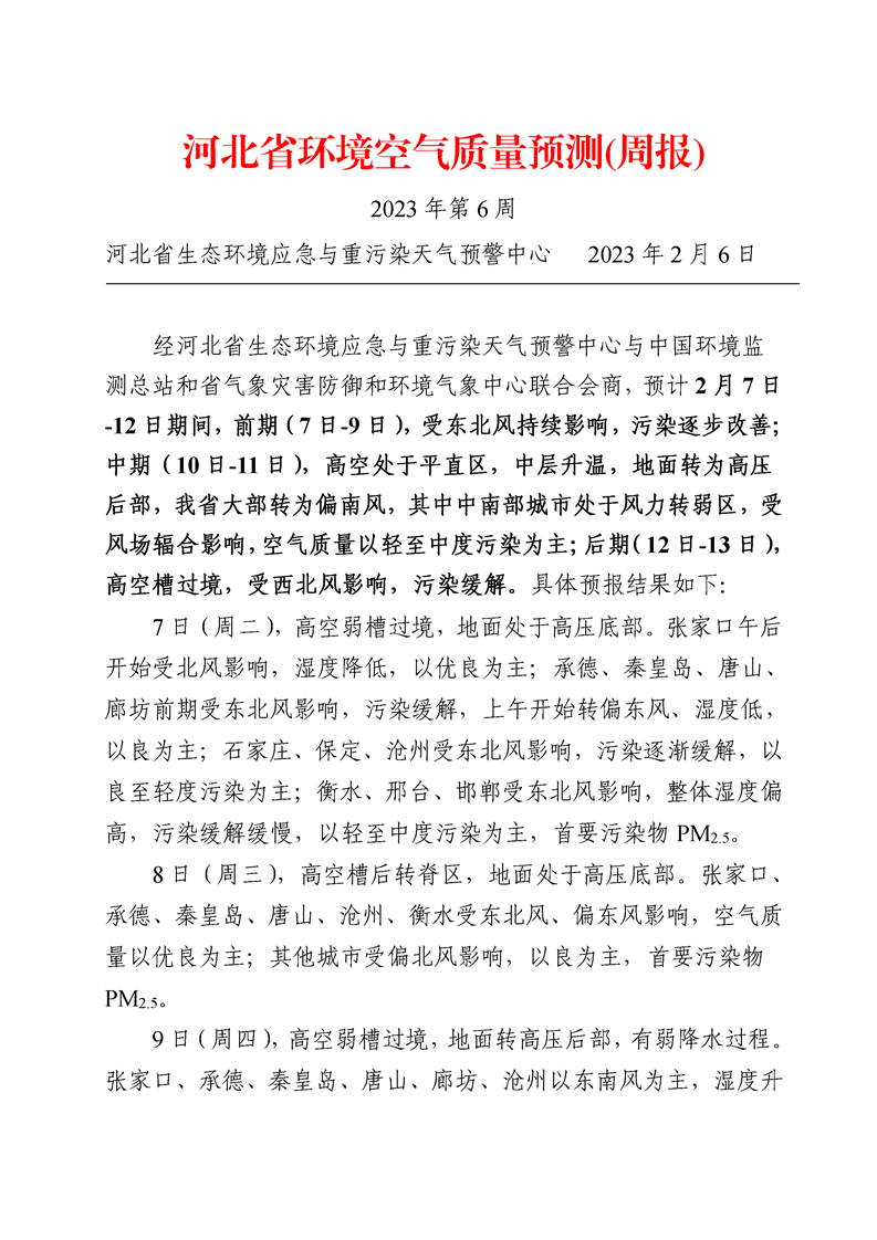 来源:省生态环境应急与重污染天气预警中心 时间:2023-02-06