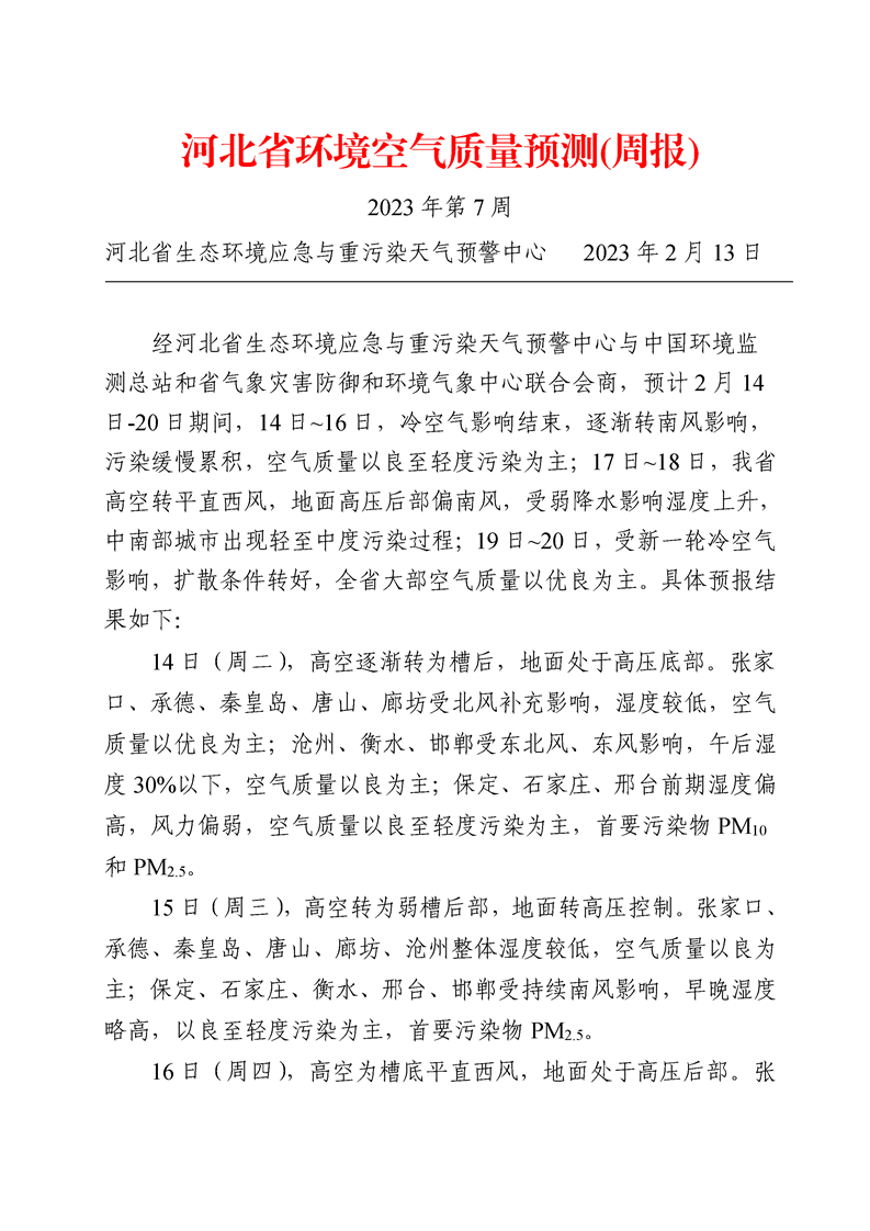 来源:省生态环境应急与重污染天气预警中心 时间:2023-02-14