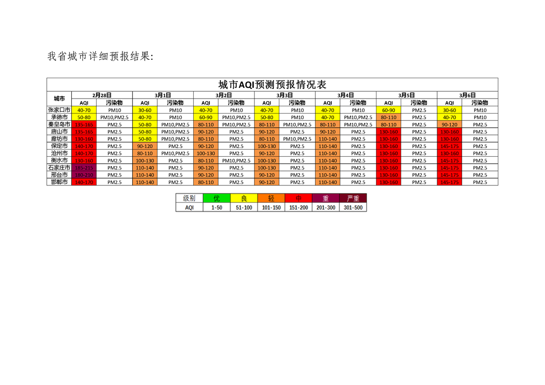 河北省空气质量预测报告(周报)2023年第10周