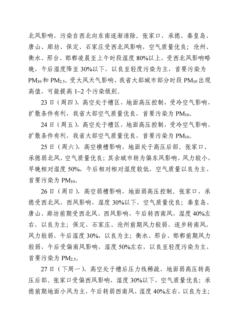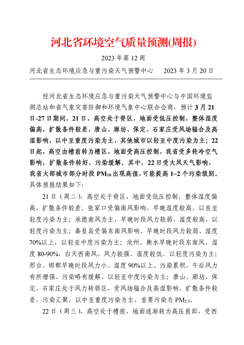 河北省空气质量预测报告(周报)2023年第12周