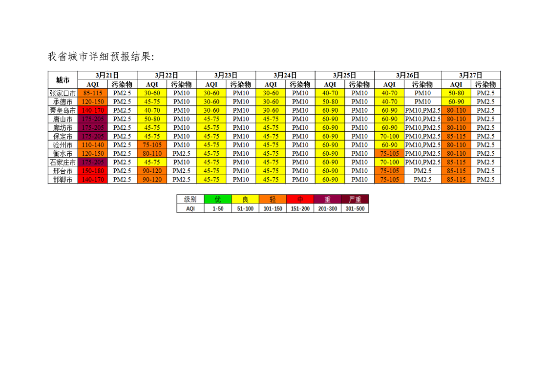 河北省空气质量预测报告(周报)2023年第11周