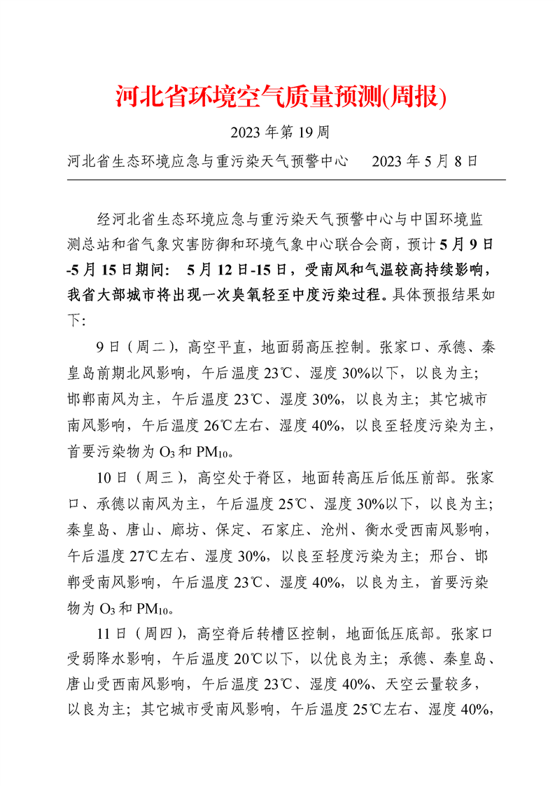 河北省空气质量预测报告(周报)2023年第19周