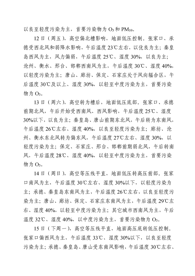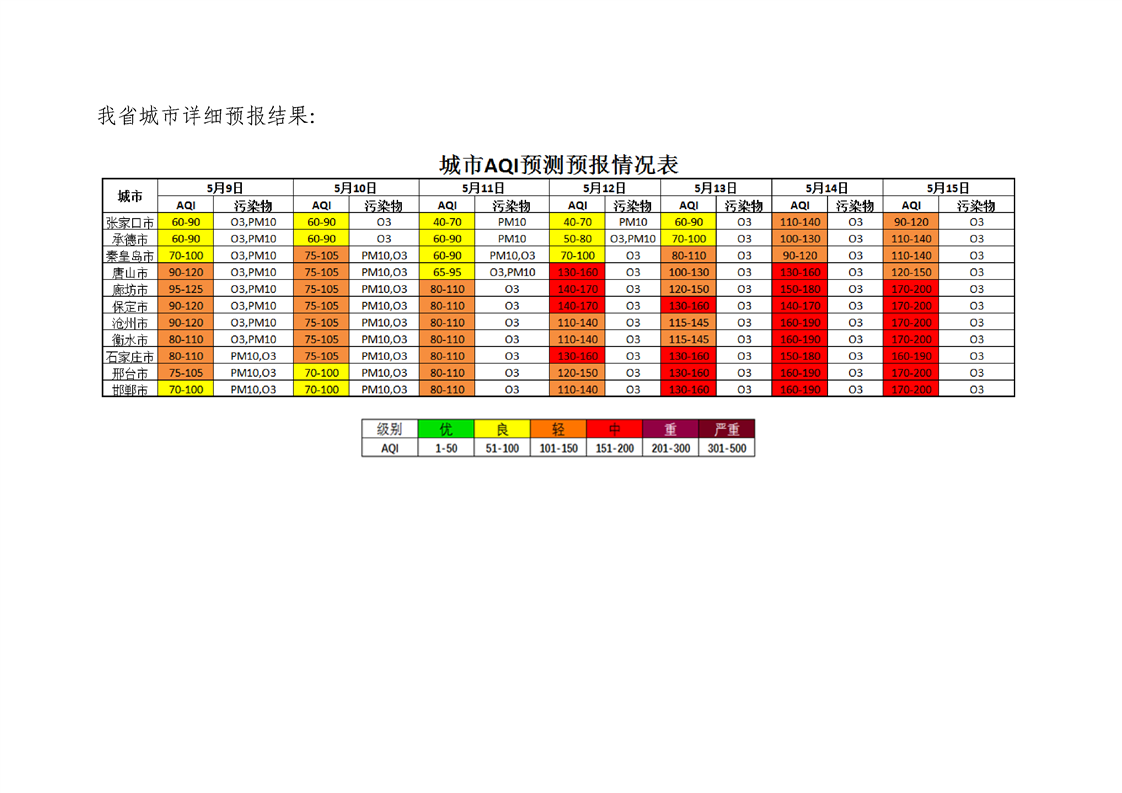 河北省空气质量预测报告周报2023年第19周