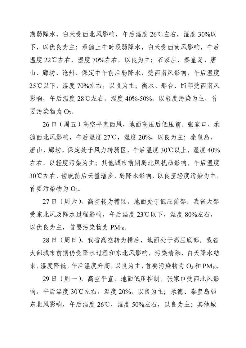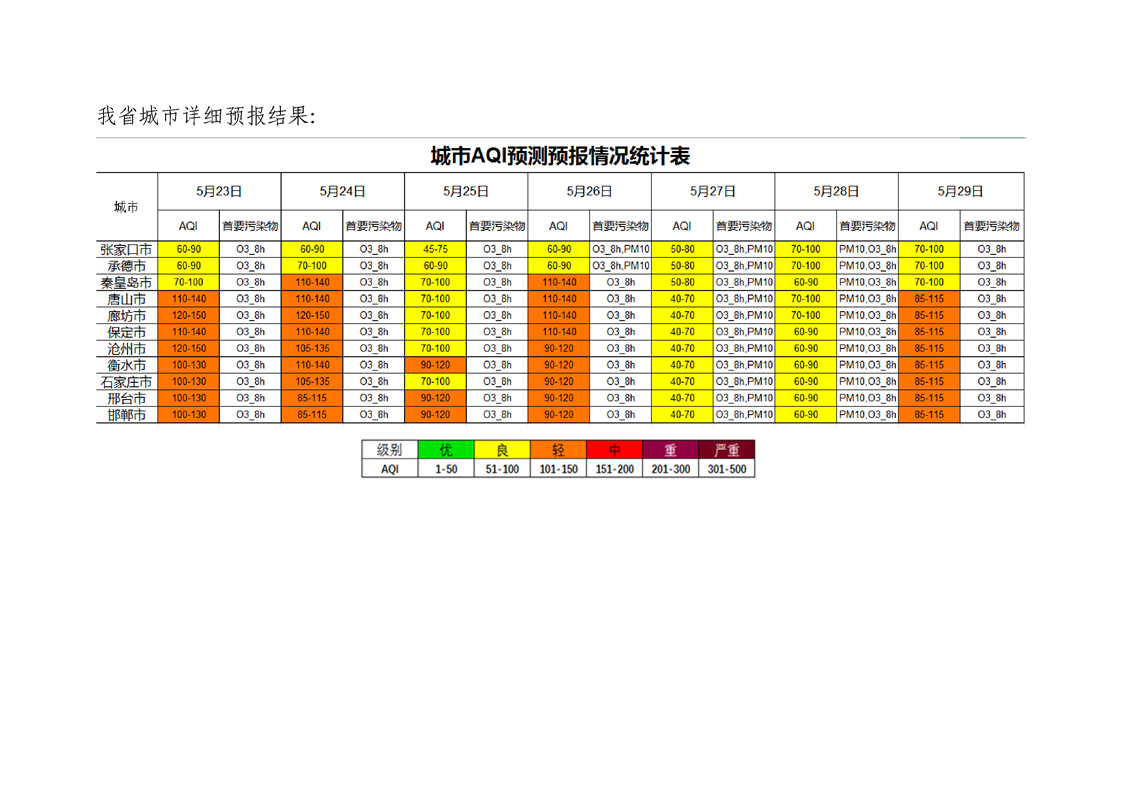 河北省空气质量预测报告周报2023年第21周