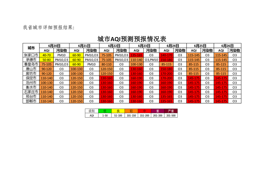 河北省空气质量预测报告(周报)2023年第24周