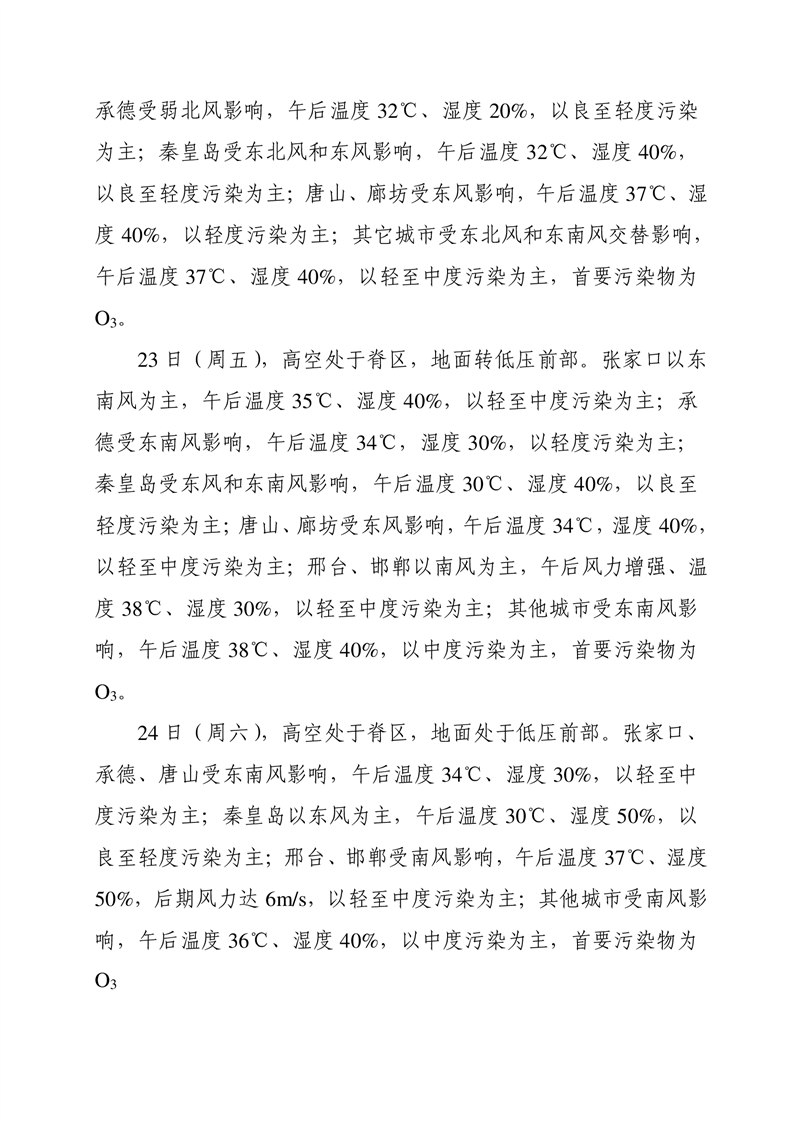河北省空气质量预测报告(周报)2023年第25周