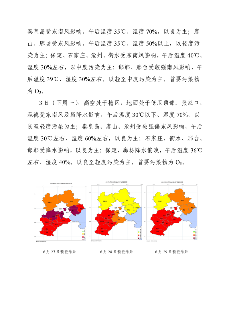 河北省空气质量预测报告(周报)2023年第26周