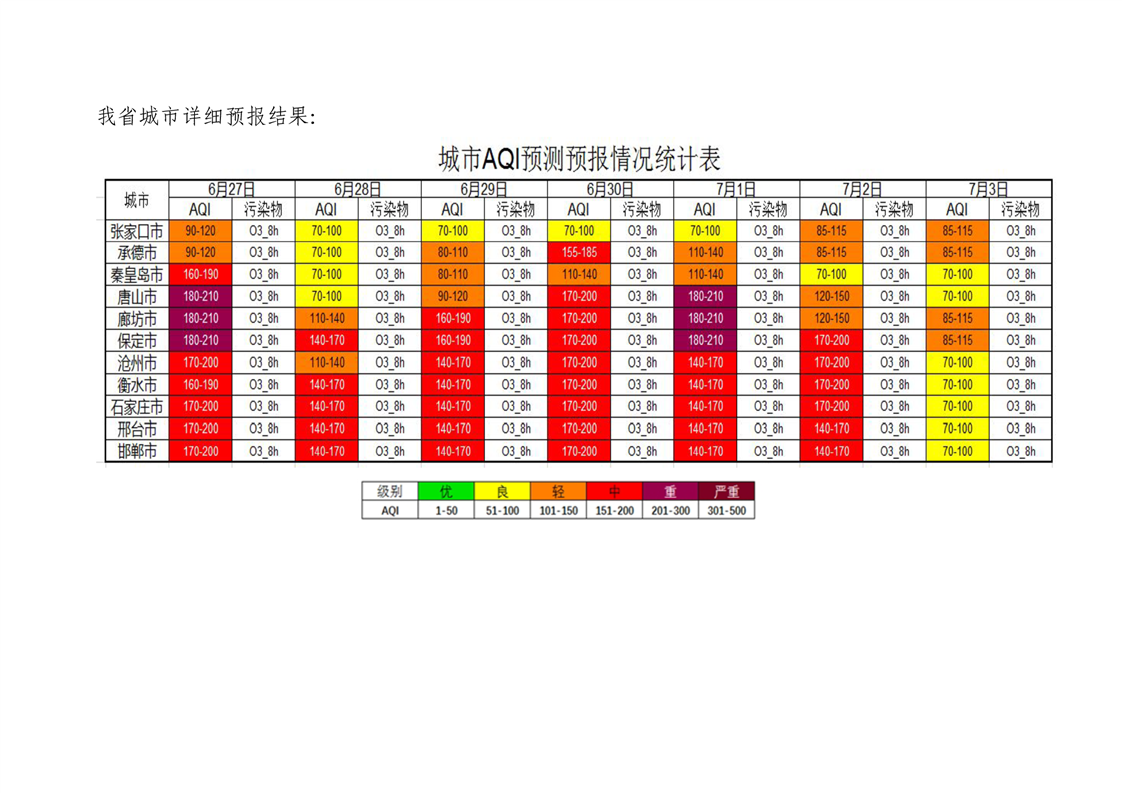 河北省空气质量预测报告(周报)2023年第27周