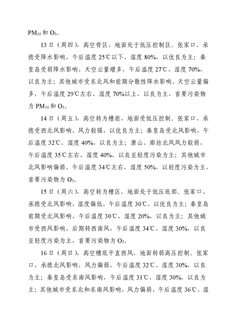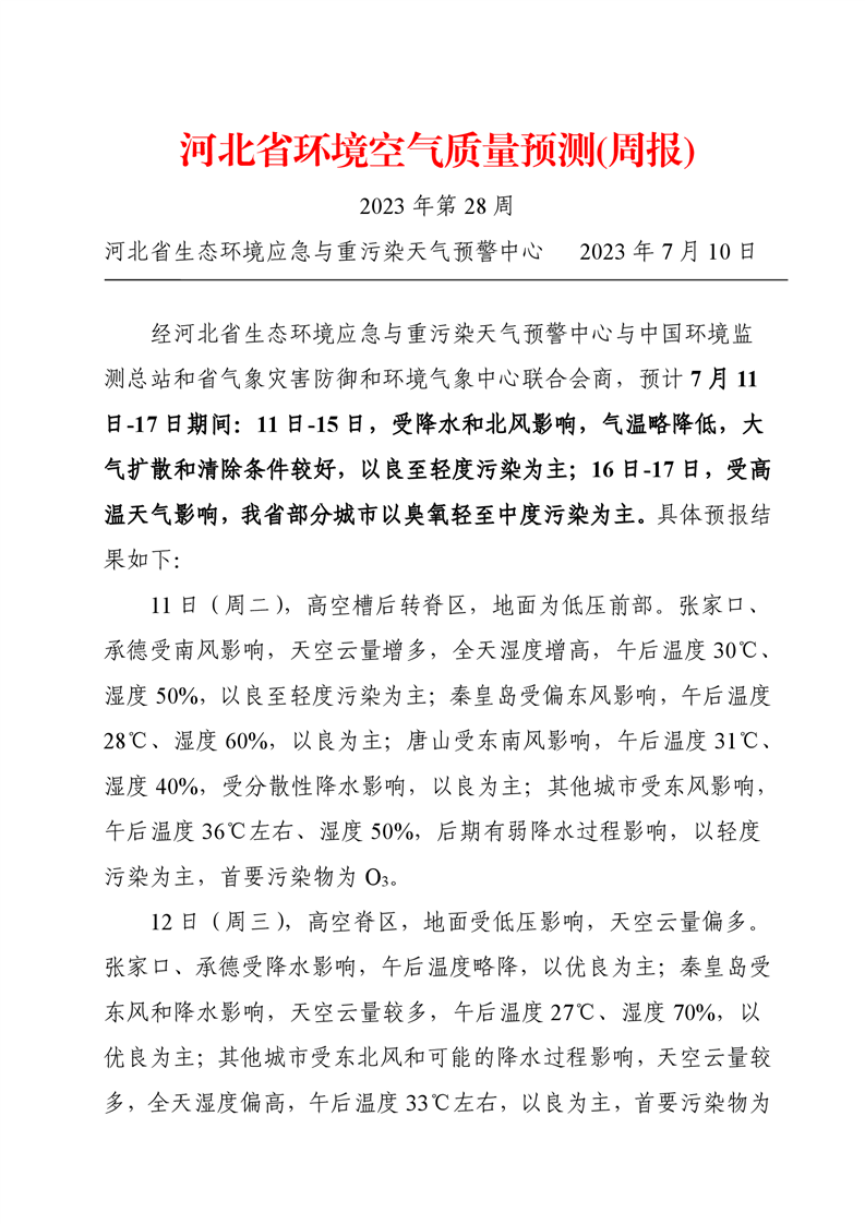 河北省空气质量预测报告周报2023年第28周