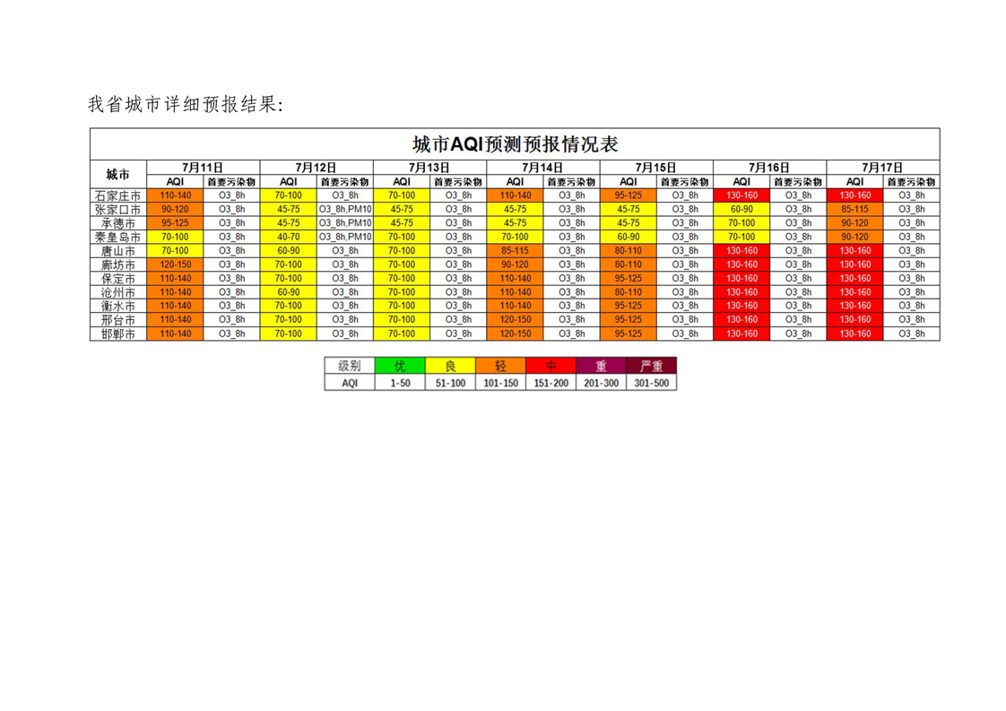 河北省空气质量预测报告(周报)2023年第29周