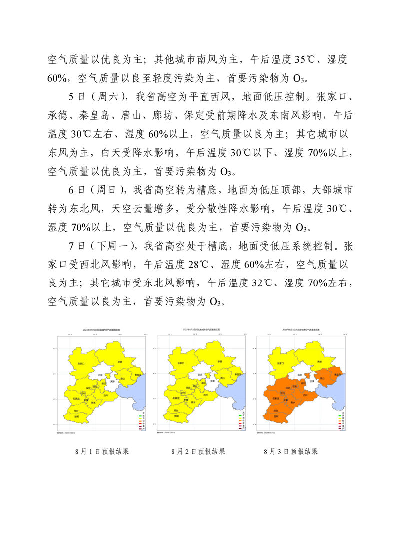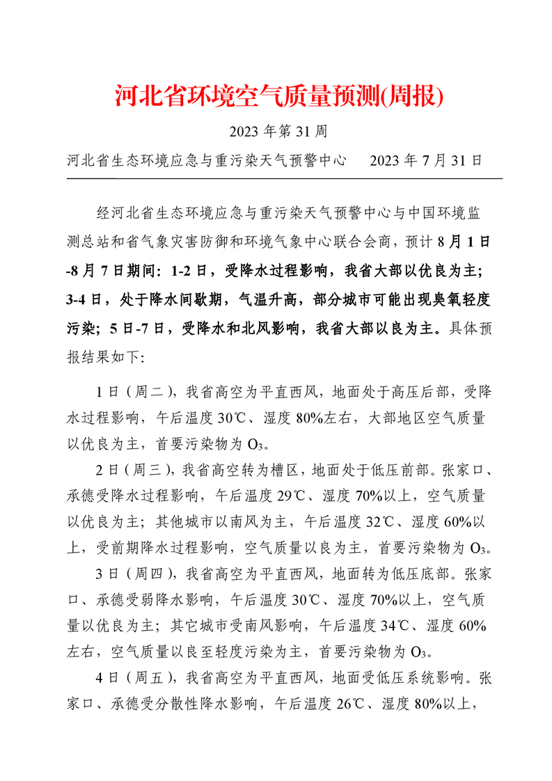 河北省空气质量预测报告(周报)2023年第31周