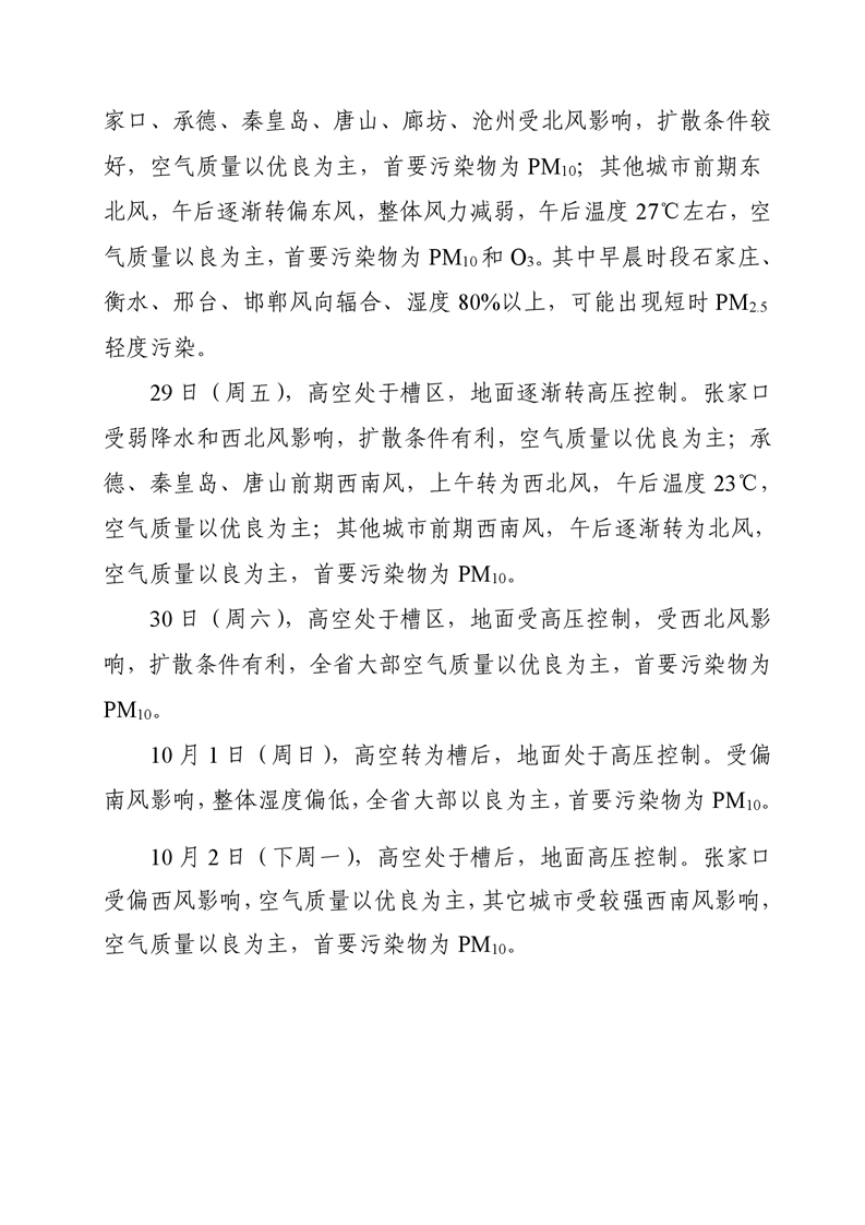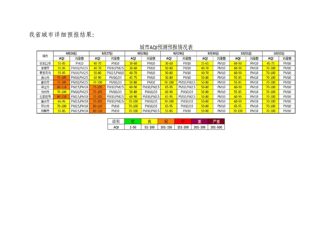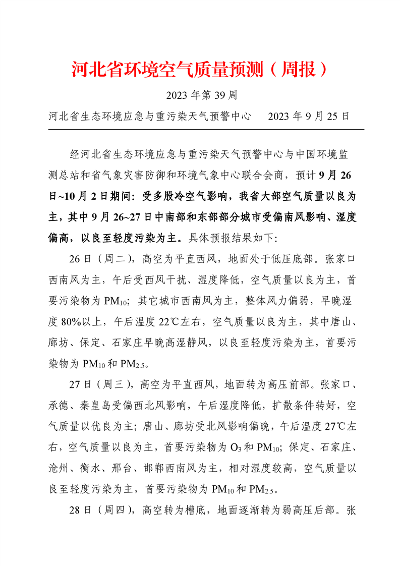 河北省空气质量预测报告周报2023年第39周
