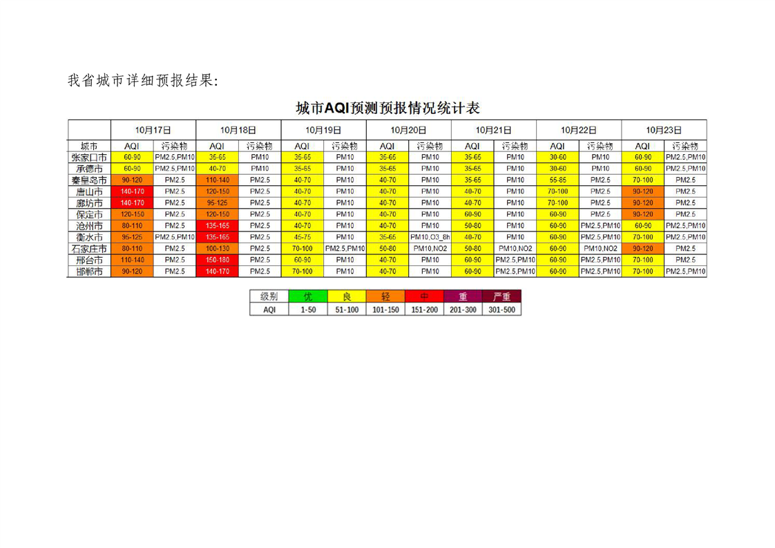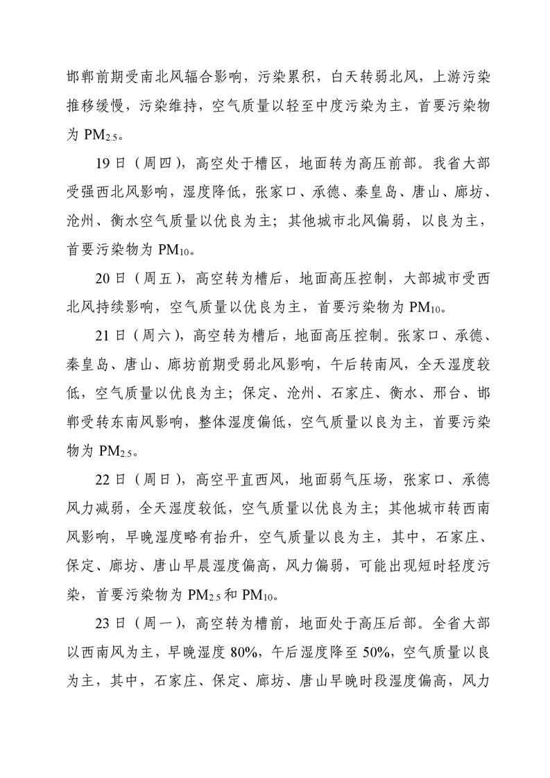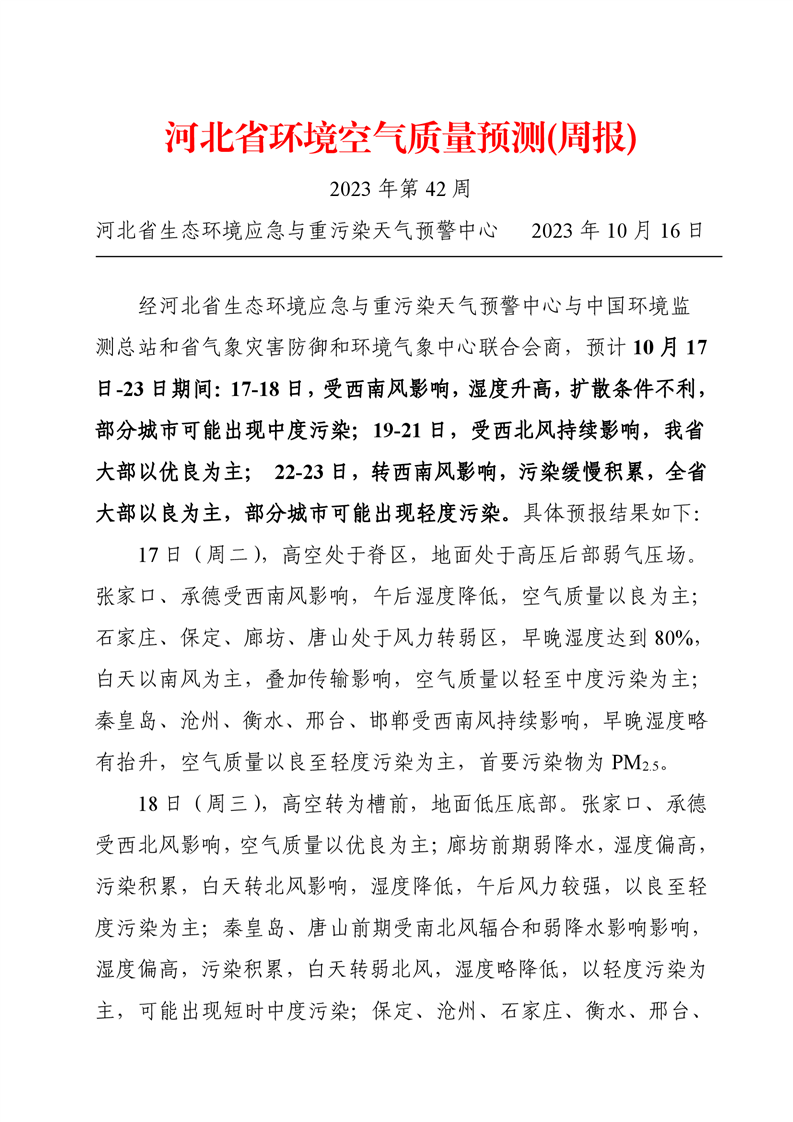 河北省空气质量预测报告(周报)2023年第42周