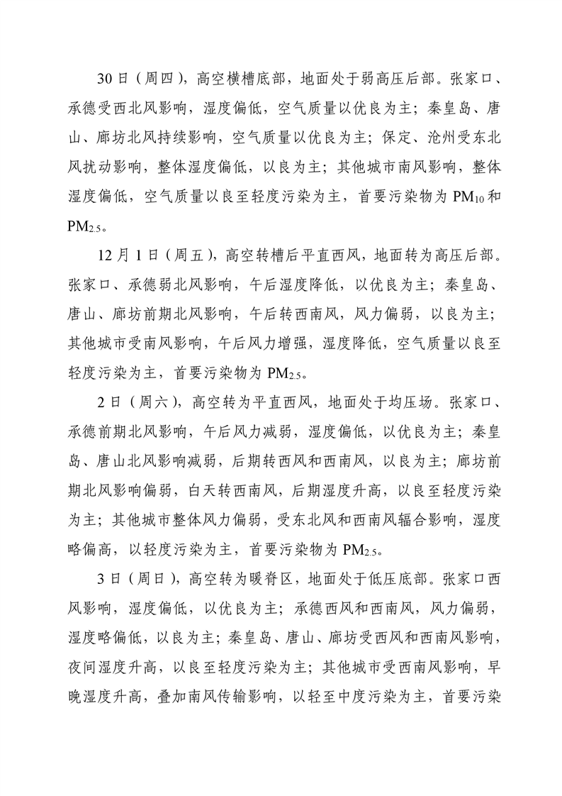 河北省空气质量预测报告周报2023年第48周