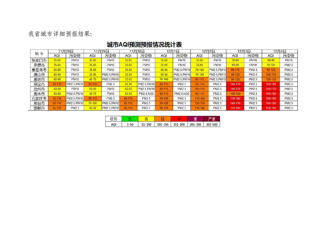 河北省空气质量预测报告(周报)2023年第47周