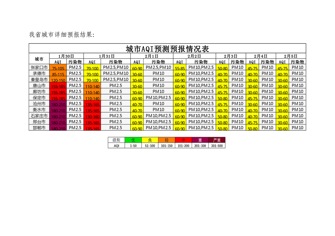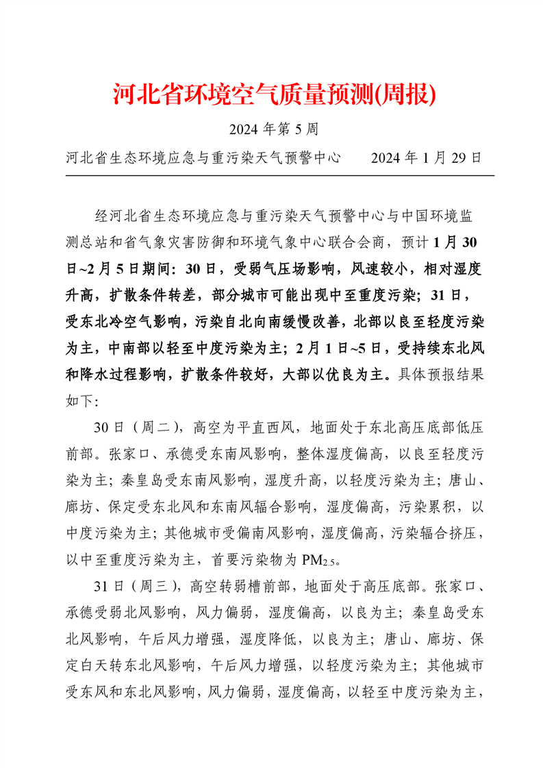 河北省空气质量预测报告周报2024年第5周