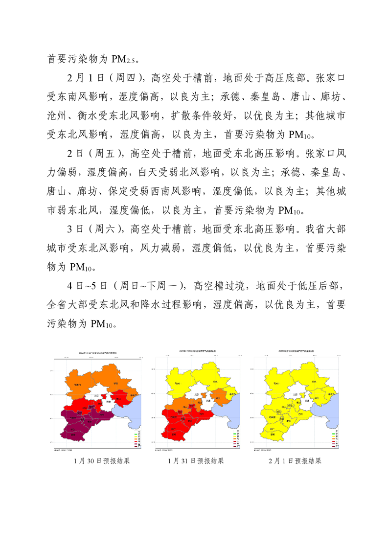 河北省空气质量预测报告(周报)2024年第5周