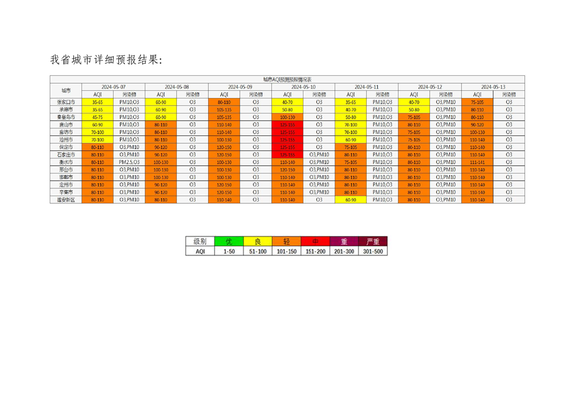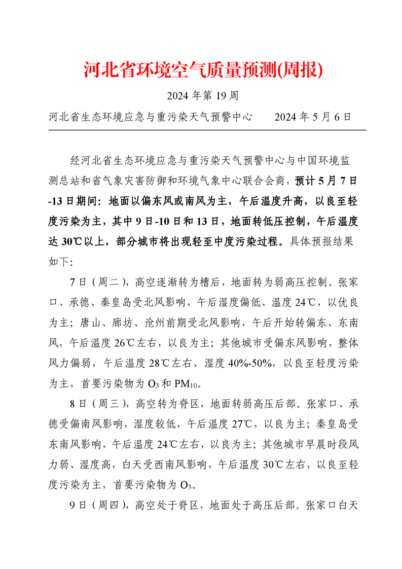 河北省空气质量预测报告(周报)2024年第19周