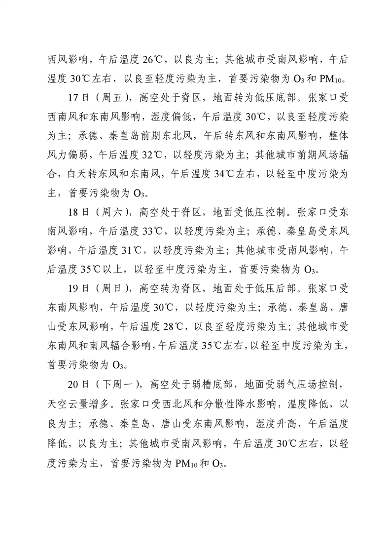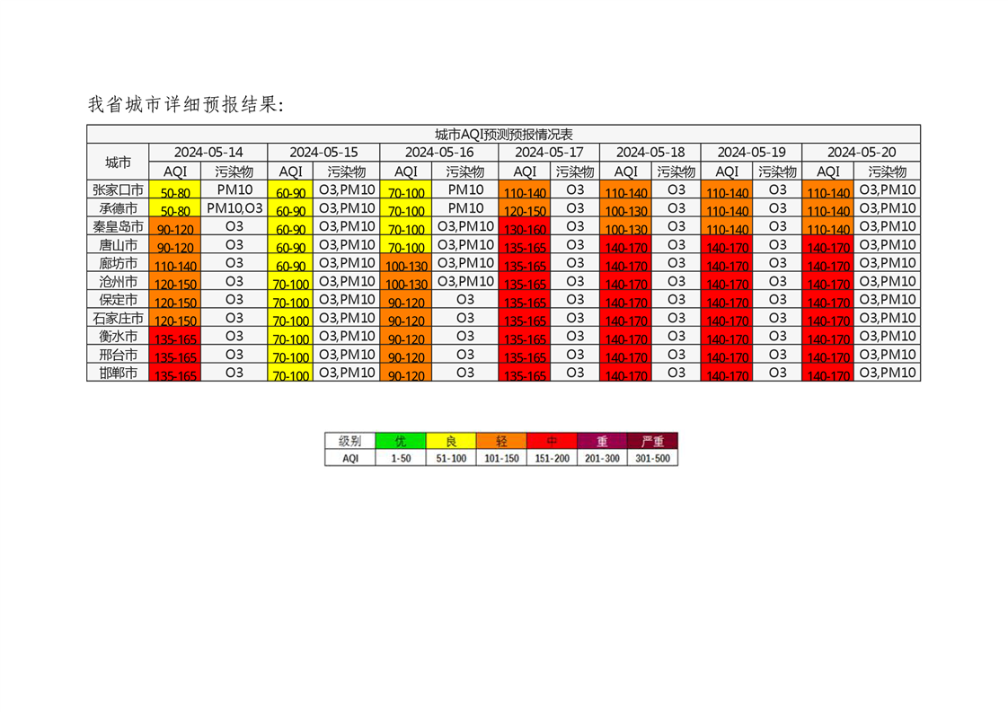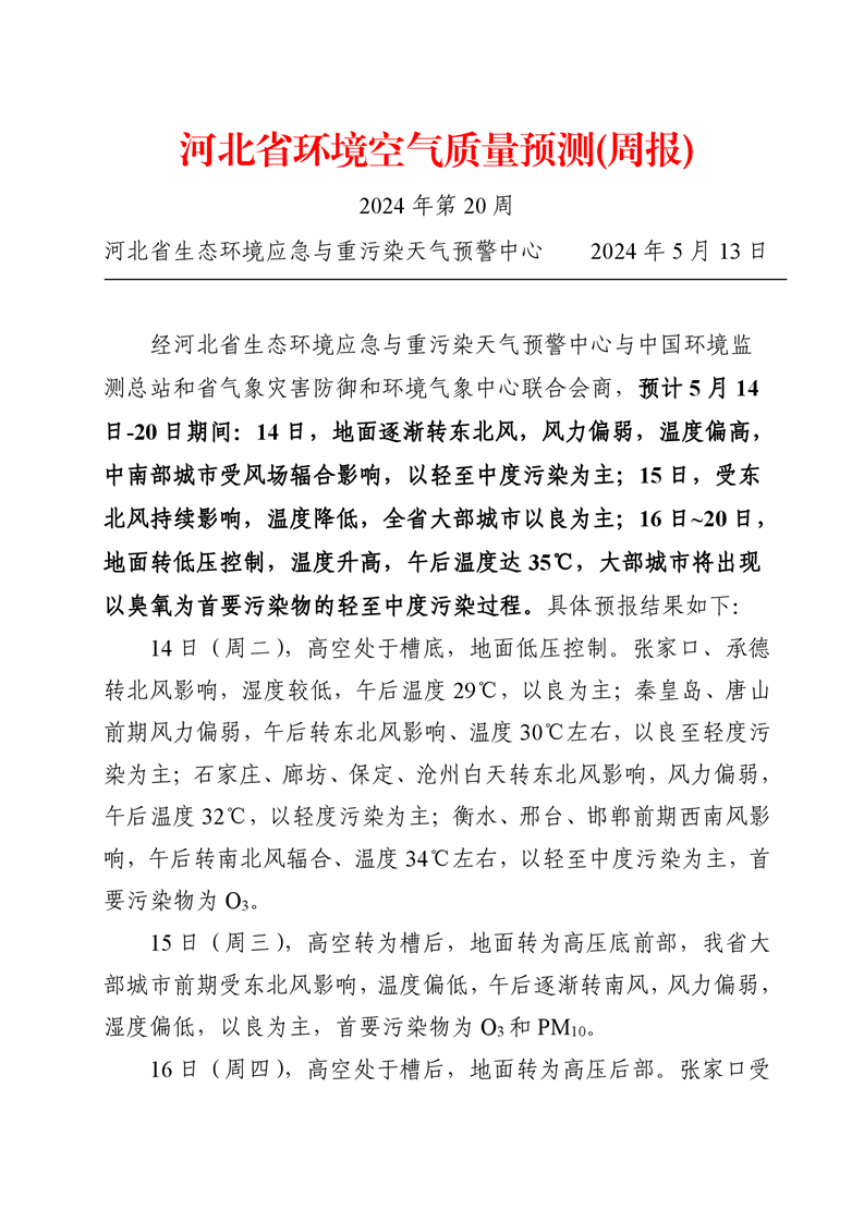 河北省空气质量预测报告(周报)2024年第20周