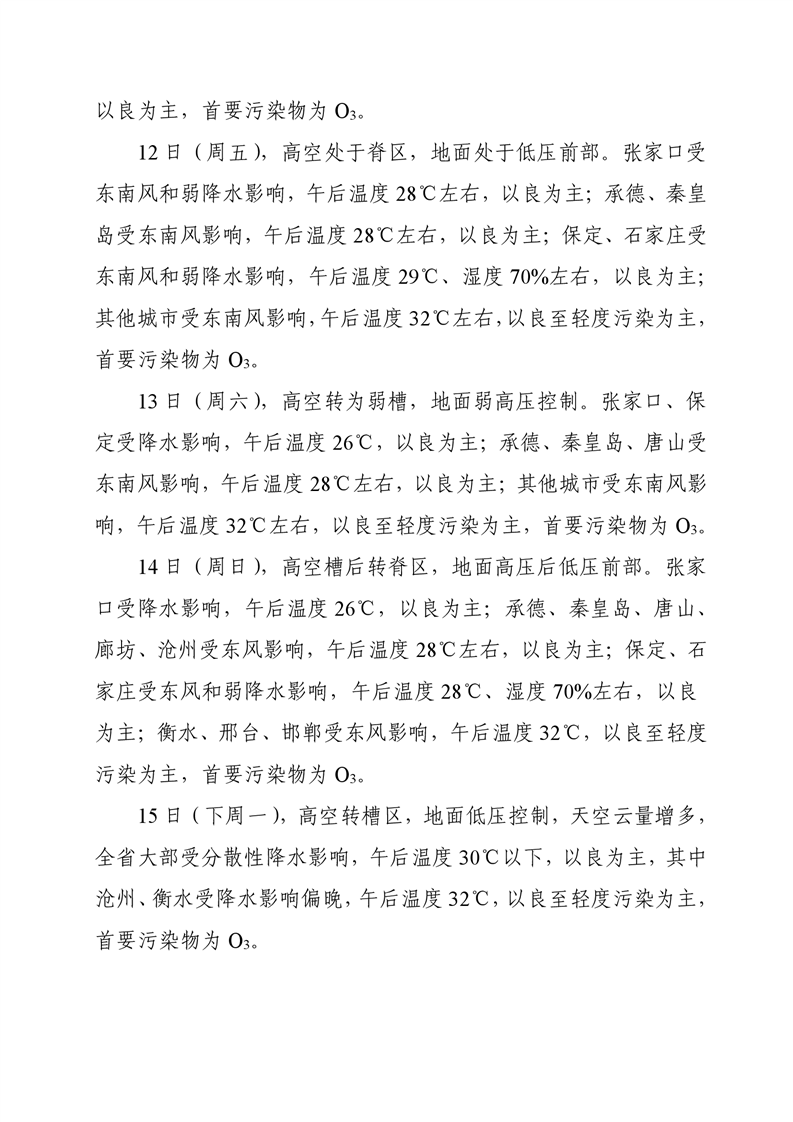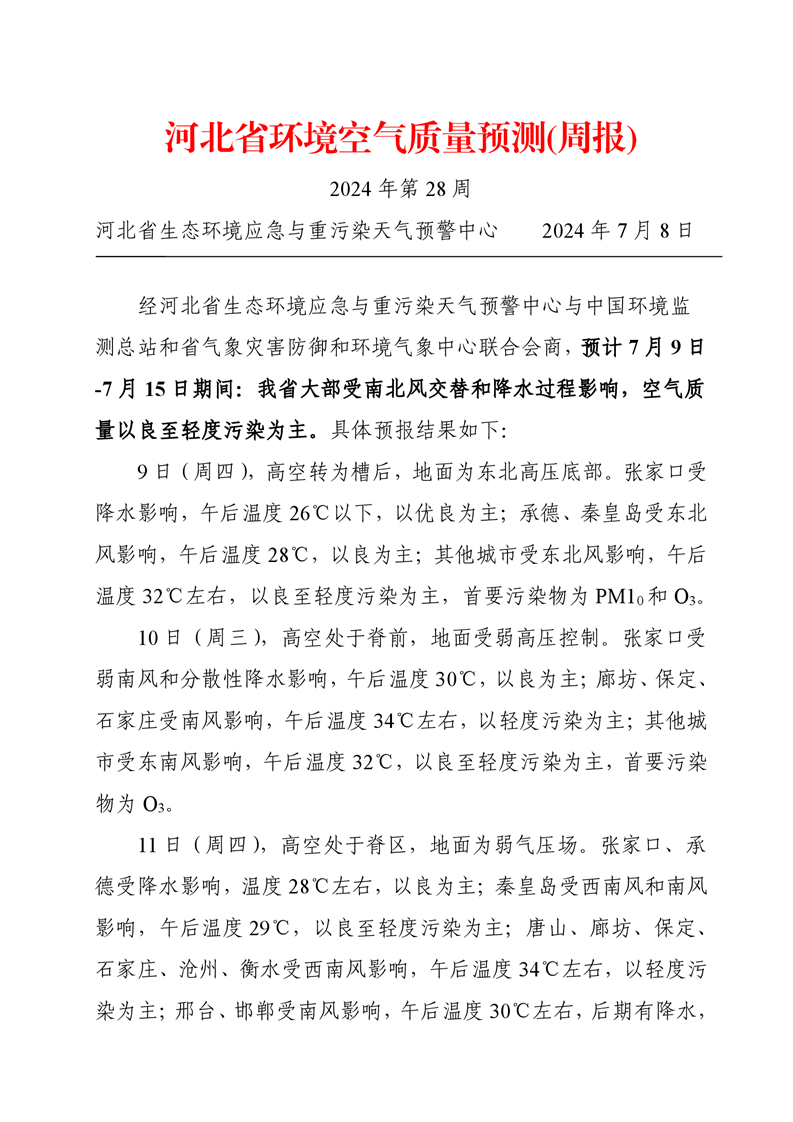 河北省空气质量预测报告(周报)2024年第28周