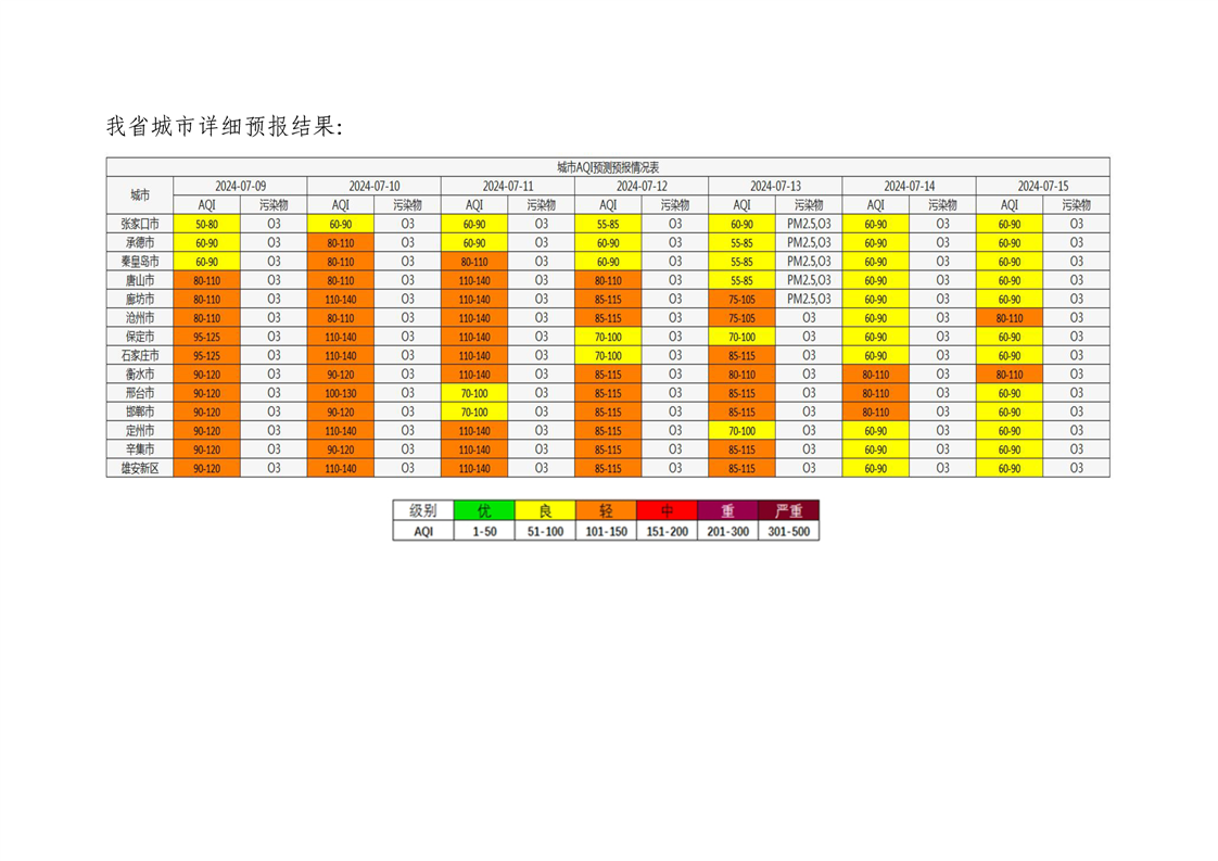 河北省空气质量预测报告(周报)2024年第29周
